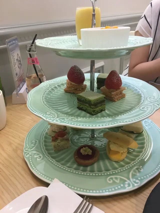 久久未嚐試到, 今次終於跟朋友黎到tong wong 既餐廳食tea. 見到有tea set, 一人一份~碟子確實精美. 但畢竟食物味道最緊要. 三盤由底至高品嚐, 但又有時間限制, 我們只好快快食過...咸味甜點十分普通, 三文治也可以上場實在驚訝!甜味甜點, 生果好酸, 最頂層的不知明芒果泡泡, 真心不知道是什麼只嘆自己唔識食...…查看更多