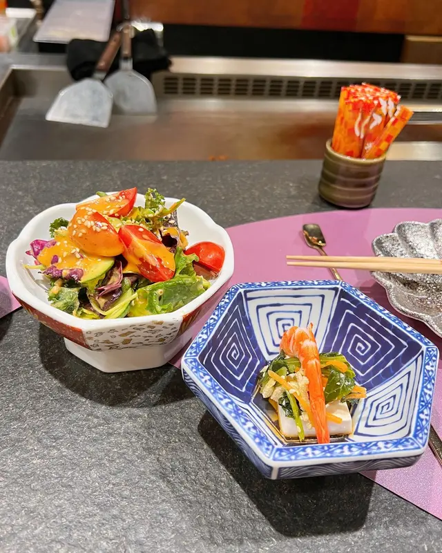 壽司嘅Omakase食得多,鐵板燒嘅omakase就真係未試過,今日就黎到佐敦呢間樂Teppanyaki試一試先😆十八層海膽杯Omakase(一人前) $1388前菜🥗有新鮮沙律,另有豆腐配鮮蝦,好開胃嘅前菜十八層海膽杯賣相好吸睛😍首先品嚐到北海道紫海膽嘅鮮甜,側邊嘅白飯魚脆片食落都好脆,仲有沖繩海葡萄、帆立貝、牡丹蝦、鮑魚、藍鰭吞拿魚拖羅蓉等多種配料,層次非常豐富鰻魚🐟鰻魚外皮烤得香脆,肉質嫩滑時令貝類燒得好香,味道好鮮甜火焰海膽甲羅燒🦀甲羅燒先用紙包住,點完火之後甲羅燒就會呈現眼前,好似睇緊魔術咁😆 滿滿嘅海膽同蟹膏蟹肉好足料,仲有三文魚籽撈埋一齊食好鮮甜😋活龍蝦🦞龍蝦有兩食,一半用左海膽醬芝士火炙,芝士有拉絲嘅效果,另一半用左龍蝦膏同牛油炒,香氣十足,龍蝦肉質爽口彈牙,兩款食落都好惹味🥰法式煎鵝肝配時令生果🍐鵝肝厚切肥美,入口即融,配埋淮山餅一齊食好特別,生果係紅酒雪梨仲有啲爆珠,可以中和返鵝肝嘅油膩感燒野菜 🍆有日本甜薯🍠 南瓜同茄子,最特別係甜薯中間夾住燒棉花糖,好有心思A5威士忌和牛厚燒牛肉薄切,牛味好濃郁,油脂好香,多士黑松露椰菜花飯黑松露香氣撲鼻,椰菜花飯炒到粒粒分明好乾身,配埋個煎蛋真係好正🤤特色紙包花膠羊肚菌蜆湯🍲個湯用特色玻璃紙包住好特別,湯底好清甜,飲到海鮮嘅精華…查看更多