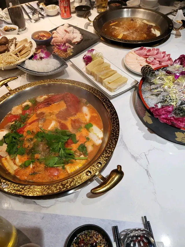火鍋湯底和配料有很多款,另有刺身十分鮮甜,仲有肥美嘅牛肉和特色小食,大家吃得十分滿足。看見餐牌原來下午還有茶市,下次一定要再來飲茶,試試精美點心