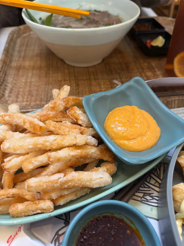 好濃郁,每啖都有粟米,溫度都好適中主食我就揀左泰式牛肉及牛肉肉丸船麵本身想試吓金麵,點知嗰日冇晒ಥ_ಥ咁就食咗金邊粉佢份量都好足夠,有炸豬皮,少少菜,湯底好濃郁牛肉片同牛肉丸份量都好多!佢仲有泰式四保嘅調味料可以加落去~加少少辣粉已經好惹味!