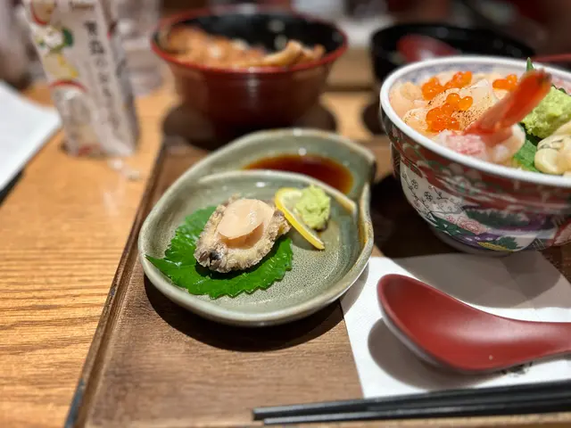 呢個位平時啲餐廳都排晒隊,唯獨是呢間餐廳人龍冇咁長,所以就入咗去試,發現其實質素又唔錯喎。呢度既招牌係燒豚肉,燒得幾香下,不過肉質一時時,有時鞋少少有時又幾滑,油香會滲入啲飯度。跟住就係佢啲海鮮丼飯,幾新鮮。期間限定出咗個鮑魚刺身,同平時食開嘅鮑魚就冇乜分別。係加咗豉油同Wasabi感覺就日式啲。每個餐嗌多$33 就有湯,甜品,茶碗蒸同沙律,好欣賞佢個湯係好濃好多材料。😋兩人食可以share其中一個餐加$33既湯品,都好夠飽。☺️…查看更多