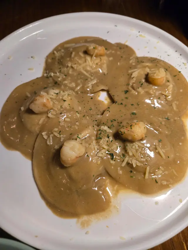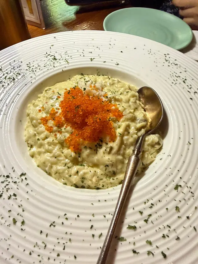 下班找老Best 到樓上酒吧,藏在鬧市裡面,像個小秘密基地一樣! 一進門有公牛頭飾,燈光是暗暗的暖色調,特別有美式金融風,坐著特別舒服。 我們點了好幾樣吃的,香草蟹肉意大利飯超好吃,糯糯的,蟹肉甜甜的,還加了魚子醬,鹹香搭配絕了!意式餃子裹著厚厚的醬汁,裡面的蝦仁特別嫩。飲品也沒踩雷,麒麟生啤喝著很清爽,朋友點的荔枝特調雞尾酒也說很特別。 價格不算便宜,但菜的分量很足,做得也精緻。那服務員小姐姐特別溫柔,還主動給我們介紹每道菜的特色,告訴我們怎麼搭配飲品更好喝,感覺特別貼心。 今天真的太開心!…查看更多