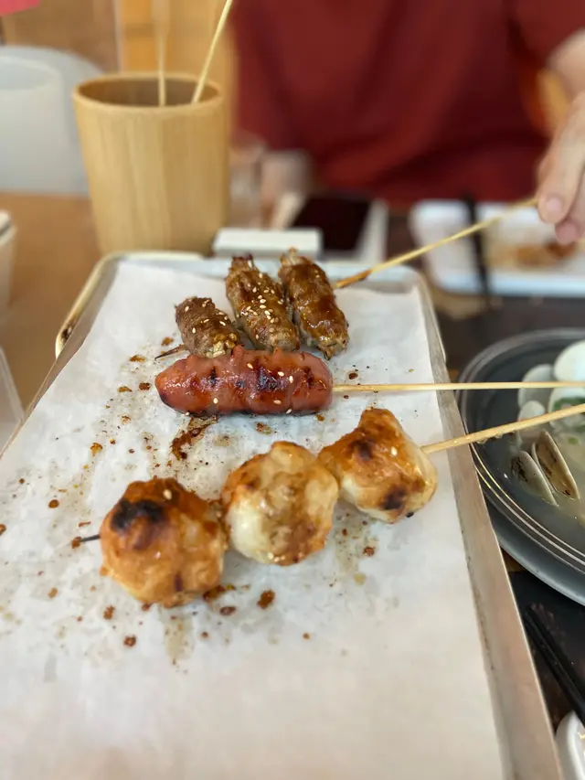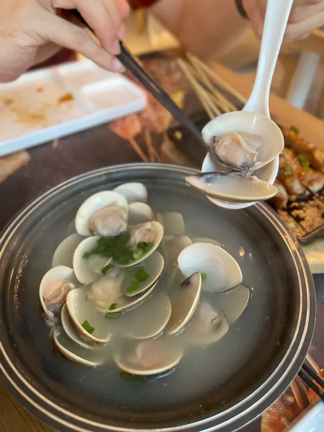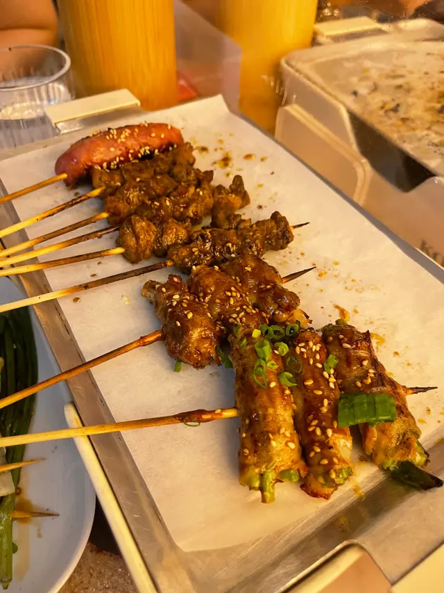 這家餐廳位於將軍澳,當日還在餐廳內見到明星,運氣不錯。⭐️大漠烤羊肉串羊肉串外焦內嫩,肉質鮮美,搭配特製的調味料,令人食慾大增呢!⭐️烤花枝墨魚丸台式花枝墨魚丸,味道不俗。⭐️金針菇牛五花卷金針菇與牛五花的搭配很好,牛肉的油脂與金針菇的清香交融,可以中和肥膩感。⭐️Q彈小豬頸肉小豬頸肉的Q彈口感十分讚。⭐️蒜蓉粉絲烤扇貝粉絲吸收了扇貝的鮮甜,十分美味。⭐️烤小黃花魚⭐️清酒煮蛤蜊⭐️烤海蝦串⭐️烤多春魚⭐️蒜蓉烤鮮蟶子點了不少海鮮,魚肉鮮嫩,蝦肉彈牙,都是不可錯過的選擇。⭐️烤椰菜花⭐️蒜蓉粉絲娃娃菜⭐️墨西哥烤玉米燒粟米走沙律醬,感覺味道更清新更香。⭐️烤新鮮李姐臭豆腐臭豆腐外脆內軟,很美味。⭐️烤牛奶小饅頭每次都會吃,脆脆的很香。⭐️蒜蓉烤茄子茄子燒得很香很軟,入口即化。…查看更多