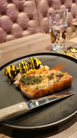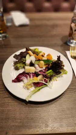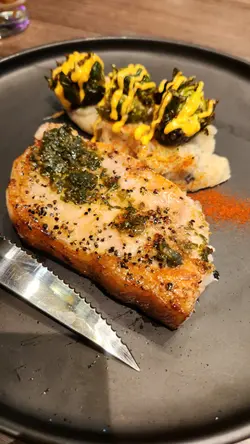 今日約了在附近上班的友人飯聚, 選了灣景中心這家西班牙餐廳, Lunch set選擇雖然唔多,但性價比不錯。套餐是Semi buffet, 選了份Grilled iberico pork chop主菜, 就可隨意選吃外邊的沙律吧。沙律吧其實不算大,但想吃的都有了, 新鮮沙律菜,各款ham、芝士等。配著湯吃很不錯的。主菜的豬扒份量比我想像中小,也不算厚,不過勝在夠juicy, 肉質彈牙但不硬。最後的驚喜是甜品, 單看賣相小件小件的, 但味道卻很好,配上一杯咖啡,完美作結。…Read More