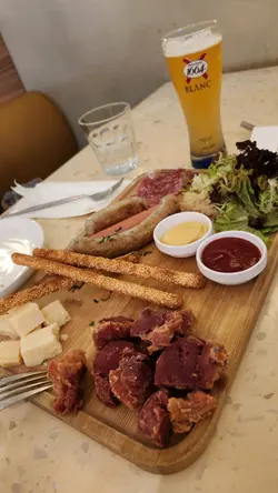 最近一直在忙, 很久沒跟媽咪去吃喝了, 這天趁著有一絲空檔, 趕緊訂了餐廳吃午餐。這次選的是fusion西餐廳。是朋友推給我的。Lunch Menu選擇很多, 我就貪心地點了Fried pork hock with German Sausage Platter, Linguine with pan fried Foie Gras in Pocini Cream Sauce, 還加了份Black Truffle Fries with Pamesean。本以為Lunch Set份量有限, 誰知個Platter送上時我驚喜了一下, 這不像是兩個人能解決的份量呢!拼盤有炸鹹豬粒,幾款腸仔, 德國酸菜等, 很下酒菜, 所以我就點了杯1664來配, 療癒得很!炸鹹豬粒皮很脆,但肉質就比較實淨。腸仔選材很好,夾著酸菜吃很OK。另外我們點了份牛肝菌鵝肝意麵, 但做得很一般, 可惜了。黑松露薯條正常發揮。不過他家食物份量很足, 所以人少的話要慎點。…Read More