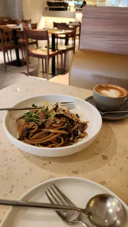 今日上完seminar已經中午, 就索性吃完午餐再回公司。我其實不挑食, 所以選擇餐廳的責任就落在同事們手上。同事很厲害,帶我們去了一間裝修很懷舊的茶餐廳, 位置還是在巷子裡的。餐廳應該開業沒多久, 所以午餐時段人不算太多。聽說他們的招牌是煲仔乾炒肥牛河, 同事馬上鎖定, 而我為了想試不一樣的,就選了籠仔排骨蒸河粉。我們三人再加了黑松露蝦餃和海胆燒賣, 配了鹹檸七, 豐富地懷舊。不一會熱辣辣的煲仔就送上來了,打開蓋,牛河還在滾動滾動,很香很有鑊氣。同事說味道足但不會過濃過膩。我們的籠仔也是認真地上桌,我最喜歡那河粉很彈牙,一點也不油而且調味不厚重。排骨味道很適中。不過兩款份量都很足, 建議可以share再加點心。未來灣仔區又多一個午餐選擇了。…Read More
