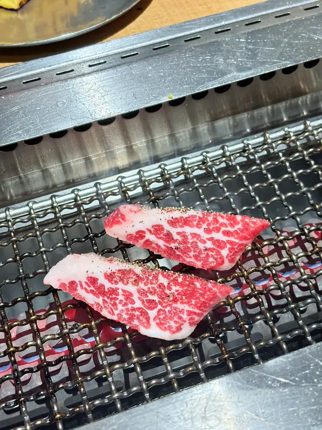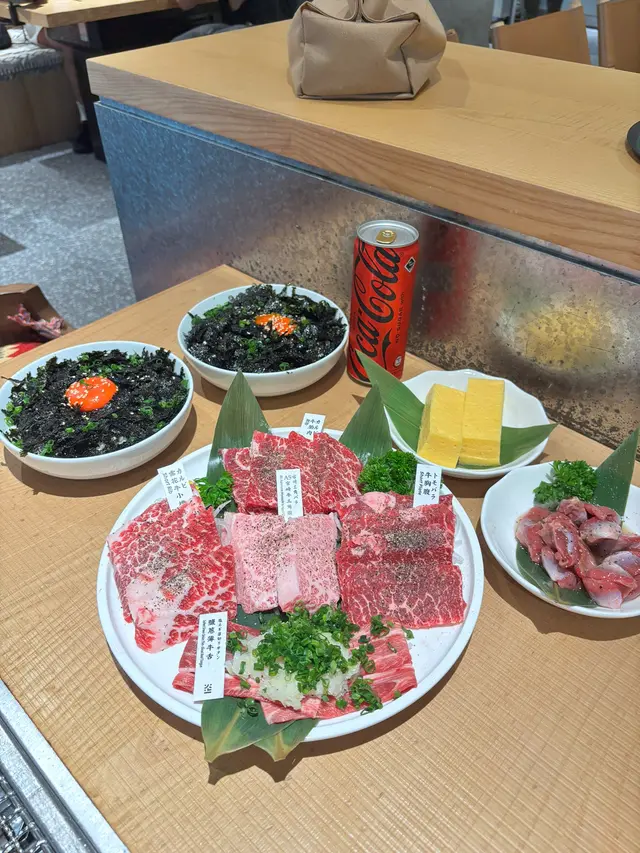 今日去咗尖沙咀食火土燒肉,呢度嘅裝潢係用露營為主題⛺️,用嘅餐具都係露營用品嚟㗎🍴,好有特色!全牛特選拼盤 ⭐️⭐️⭐️⭐️⭐️入面有鹽蔥薄牛舌👅、雪花牛小排、A5宫崎牛三角腹、牛肋肉、牛胸腹🤓。呢度嘅牛肉冇乜點醃過,主要用鹽、黑椒醃過🧂,比較原汁原味😆。鹽蔥薄牛舌就比較有咬口彈牙🥩,A5宫崎牛三角腹就最有油脂香,入口即溶咁🤤,雪花牛小排、牛肋肉、牛胸腹嘅肉同油脂分布較平均🤩,唔會好肥,又唔會好韌🙌🏻。雞腎⭐️⭐️⭐️⭐️⭐️雞腎都有好多舊喎🐓,每件都好大粒,咬落好彈牙爽口🤩,再加埋燒肉汁,送飯一流🫃!厚燒玉子蛋⭐️⭐️⭐️⭐️⭐️原本以為呢個玉子燒係熱嘅,點知原來係凍嘅🤣,所以我地擺咗個爐度燒下佢🔥,覺得暖暖地食好食啲🤣,蛋味都幾濃🐣!夢王蛋海苔飯⭐️⭐️⭐️⭐️⭐️生蛋撈飯一定係最正嘅🍚,再加埋大量紫菜俾啲鹹香味落啲飯度🍙,加埋啲蛋汁,一啖燒肉一啖飯🍖,好好食🙌🏻!開心果雪山冰⭐️⭐️⭐️⭐️⭐️呢個開心果冰好重開心果味🍧,但質地就唔似刨冰,反而似雪糕多啲🍨,上面仲有好多開心果碎粒。雪山冰超大碗🫃,兩個人食唔晒🤣可樂⭐️⭐️⭐️⭐️⭐️…查看更多