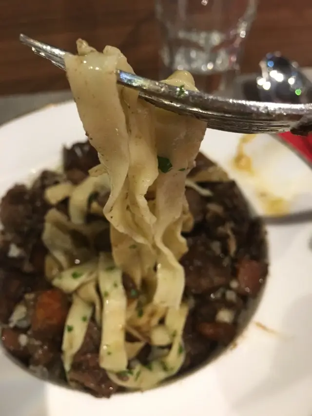難得今天來到中環覓食,走到這間裝飾帶點摩登時尚的餐廳,寧靜的環境頗適合喜歡二人世界的我們。先來了法式餐包,口感帶點軟稔,但卻又有點獨有的煙韌感,自家製的成品果然是獨一無二,沾上黑醋和橄欖油,又是另一番風味。橙紅色的雜菜湯,味道酸甜令人大開胃口,配上各種蔬菜和豆類的湯料,可見用料選材相當用心。主菜點了紅酒燴牛肉意大利麵,牛肉份量相當多,足以覆蓋整個麵表面,牛肉軟稔帶點酒香,配上彈牙的麵條,是最佳的配搭。套餐附有餐飲一杯,喝著冰涼的檸檬茶,來為這充滿情調的一晚作結尾。…Read More