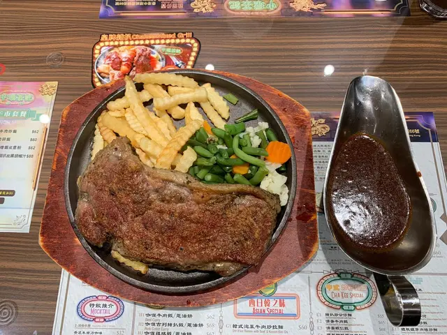 在中環區飲飲食食絕不便宜,今晚來到這家茶記令我驚喜萬分。原址是高檔茶記來佬餐廳,一進門就有那種那些年的舊調,方格磁磚和天花吊扇都充滿味道。懷緬一番後就來看餐牌點食物,一份香煎美國西冷牛扒,再加一份皇牌焗豬扒飯。鐵板奉上是舊式扒房的指定動作,淋上惹味的黑椒汁鐵板嗞嗞作響,再配上港式扭紋粗薯條,把老扒房的經典再次重現。焗豬扒飯也做得相當出色,豬扒厚切肉質鬆化軟嫩有肉汁,醬汁味道也是不錯的,惟鋪面的芝士略嫌不足,最後以一杯充滿椰汁味的紅豆冰作結。…Read More