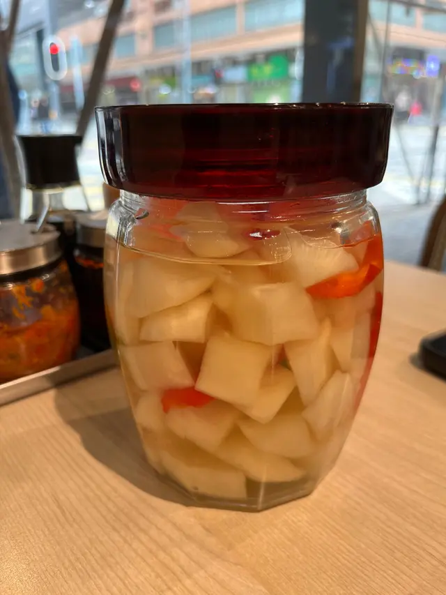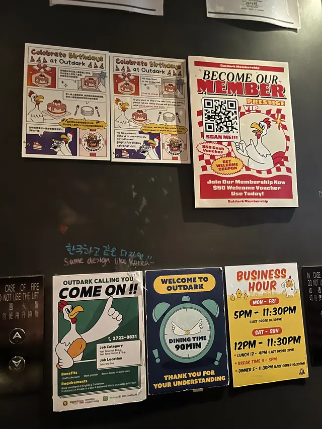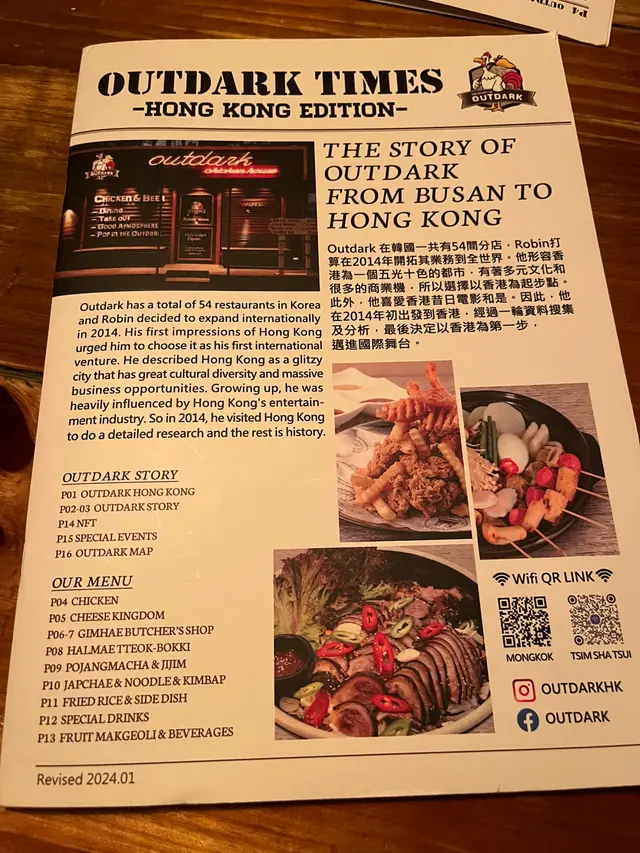 最近我去咗尖沙咀的韓式餐廳Outdark,真係令我非常滿意,呢間餐廳由韓國人經營,菜式全都係自製,而且係由韓國人親自煮,無論係味道定擺盤都好有水準,真係100分推薦。一入到餐廳,就被佈置吸引咗。牆上掛滿咗顏色繽紛的鎖,好似南山塔咁,好浪漫同溫馨嘅氛圍。店裏面生意好好,已經有幾台喺門口等緊。等緊嘅時候見到有個Photo box,幾得意喎,好似影貼紙相咁,不過影出嚟嘅係黑白嘅同埋係用普通嘅紙print出嚟,免費嘅,我覺得都可以玩吓Menu成本雜誌咁,每道菜都好吸引。我哋點咗辣炒豬肉。哇!真係望落都流口水,中間超大盤豬肉同芽菜,辣辣地,加埋芽菜口感爽脆,側邊有芝士粟米、泡菜、紫菜芝麻飯、腸仔😍超豐富!!側邊嘅每一道菜都好好食好新鮮,腸仔有少少似芝士腸嘅口感,泡菜新鮮,可以配埋嗰紫菜飯一齊食,真係食得停唔到口。😍我哋叫埋kimbap(牛肉),用左牛肉、蘿蔔、豆腐、青瓜、青瓜包成一卷,大大舊,都幾飽肚。叫埋香蒜蜜糖半份炸雞,原本諗住半份吾會好多,點知好大份,有埋薯條薯格,炸雞充滿蜜糖醬,肉質鮮嫩,但真係好大份,超飽。飲品我叫左七喜同strawberry makgeolli。而strawberry makgeolli就係一種韓國米酒,好飲😍甜得黎個米酒唔會話太濃,帶有淡淡嘅草莓香氣,口感柔和。整體而言,Outdark哩間餐廳真係食物無論係味道、擺盤、餐廳環境同食物水準都無得頂,正宗嘅韓國味道,一定會再幫襯!!…查看更多