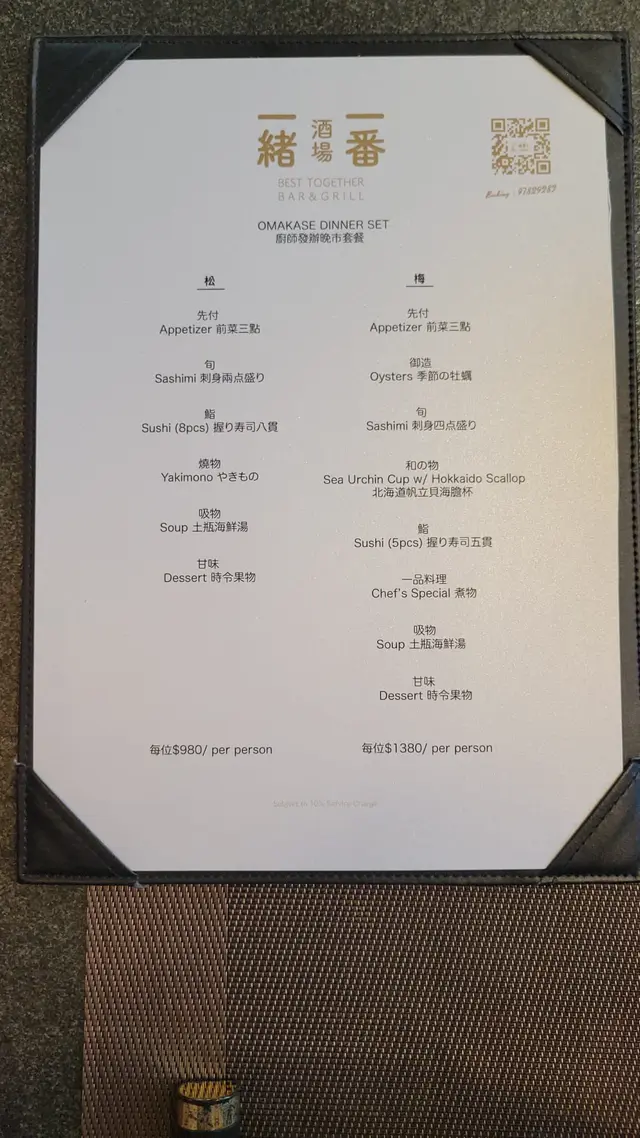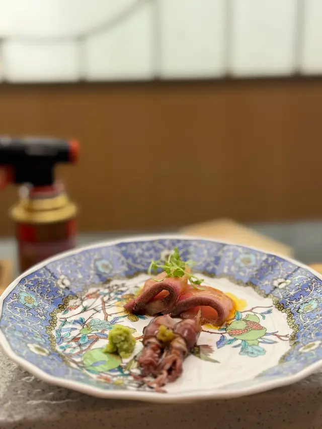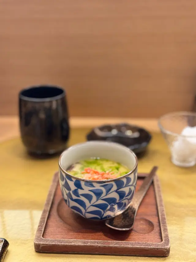 今晚去中環一間日式料理吃Omakase,餐廳裝修簡約,帶日本酒場氣氛。前菜三點:龍蝦沙律的龍蝦肉鮮甜,飛魚子及沙律醬令味道更加突出。蟹膏豆腐配黑松露將蟹膏溶入豆腐之中,將平凡變成不不凡,豆腐嘗到濃而鮮味道,加上黑松露顯得更矜貴。小松菜漬物爽口又帶少許咸味,感覺特別。刺身兩點盛:深海池魚王配甜薑,廚師建議第一片不要點醬油,可以吃出魚肉原有鮮味。池魚肉質爽口彈牙又充滿油份,第二片點了醬油令魚味更突出。鰹魚配自家制醬汁,醬汁甜中帶酸,肉質彈嫰帶輕微煙燻味道。壽司八貫:壽司是已調和了醬油的醋飯,基本上只需要加少許山葵便可提鮮,每款都非常新鮮甜美。赤蝦肉質細緻滑嫩、活北寄貝爽口清甜、鮮帆立貝嫩彈、鰤魚肥嫩油脂豐富、金目鯛細膩鮮甜、赤身顏色鮮紅,味甘帶獨特酸味、火炙燕鰶入口甘香,魚油豐富。翻查資料,原來燕鰶與我們經常吃的馬友魚屬同一科,難怪魚味濃郁又富油香。海膽以一片紫菜包裹著澎湃海膽,滿口海水鮮味。串燒:雞尾、雞軟骨及脆肉瓜,少有用雞尾作串燒,充滿油脂與甘香。雞軟骨又香又脆,脆肉瓜爽脆清甜。土瓶海鮮湯,首先是木耳昆布味道,之後海鮮的甜味衝擊味蕾,以好像茶壺茶杯形式盛載,非常特別。最後以清甜哈蜜瓜清洗味蕾作結,完美享受一次精緻又美味的廚師發辦晚餐。一緒一番酒場士丹利街11號Stanley 11 26樓…查看更多