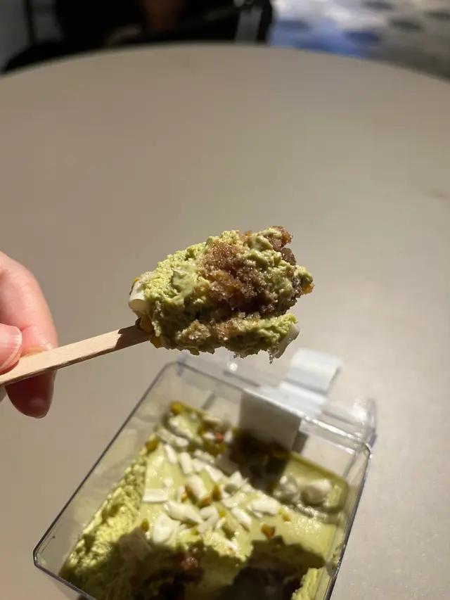 商場內的小店,一路知道佢嘅存在,聽聞雪糕好特別,見天氣熱,啱晒。佢嘅雪糕係自己做嘅gelato,味道時不時會轉。今次見到有大樹菠蘿、開心果、蠔菇、朱古力…. ,幾款都想試,但又唔敢食咁多,結果都只係選左開心果嚟試。佢有啲set係gelato + espresso,未試過咁食就試下。開心果gelato好滑,奶味明顯,開心果味吾係好濃(可能我期望比較高)。店內的哥哥仔建議先試食淨雪糕,然後再加espresso落去。Espresso 酸味比較重,唔係好苦,可能諗住要加落雪糕,所以係室溫嘅。Gelato + espresso呢個組合幾好,中和左雪糕嘅甜和espresso嘅酸苦。另外加左個榛子咖啡蛋糕,pound cake style, 蛋糕內有粒粒榛子,口感吾錯。不過,個名有「咖啡」,食落就吾多覺咖啡味。服務態度幾好,感覺舒服。counter落單,哥仔會送過嚟,又會主動問要唔要杯水。價錢嚟講,pound cake $22,開心果gelato 單球$64。Lunch有酸種麵包$48,三文治$68。飲品一杯$40上下。整體價錢唔平,但味道吾錯而且有特色,有心有態度。小店支持本地耕作,店嘅中間有放咗啲果蔬俾人買。位置係商場入面,座位位置比較open,但商場人流吾多,所以又吾會好嘈。三兩知己係度hea下,都唔錯。…查看更多