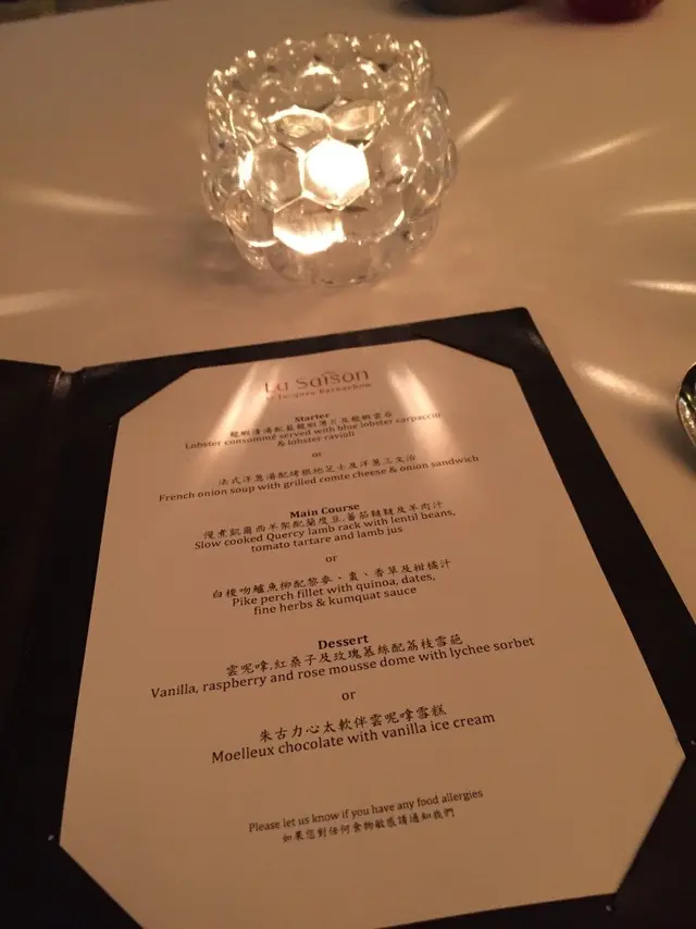 前陣子見到一位朋友Post一張帶女朋友黎這間法國餐廳慶祝生日既相, 眼見餐廳環境好似好有氣氛同D食物都幾吸引, 我就約左一位朋友去試, 竟然有意想不到既驚喜!這晚我地試左個set dinner, 係廚師特別推介!一個set dinner有3個course, 每樣有兩個選擇.上starter前亦有另外提供幾樣開胃小食, 細細件一口就可品嚐, 岩晒女士們呢個小食帶有咖哩味, 幾特別!呢度既包都係新鮮出爐, 但為左留肚食main course, 我通常都係食少少呢發覺呢間餐廳唯一既好處係夠靜, 燈光暗暗地其實幾浪漫, 好適合情侶黎上菜尚算快, Starter我揀左Lobster consommé, 呢個龍蝦湯同出面既好唔同, 味道帶少少甘, 有中西合壁既感覺, 廚師話係龍蝦精華, 味道好不同, 可以一試!飲完湯, 好快上main course, 今次我試左Pike perch fillet, 本人比較喜歡食魚呢個course 我覺得好值得食, 因為一般法國菜既portion 都好細,但食完呢個我已經好飽, 而且魚肉好鮮甜最驚喜既係伴菜當中有一樣我未食過既, 亦係穀類既一種, 叫quinoa, 好有咬口好香, 忍唔住食晒了…查看更多