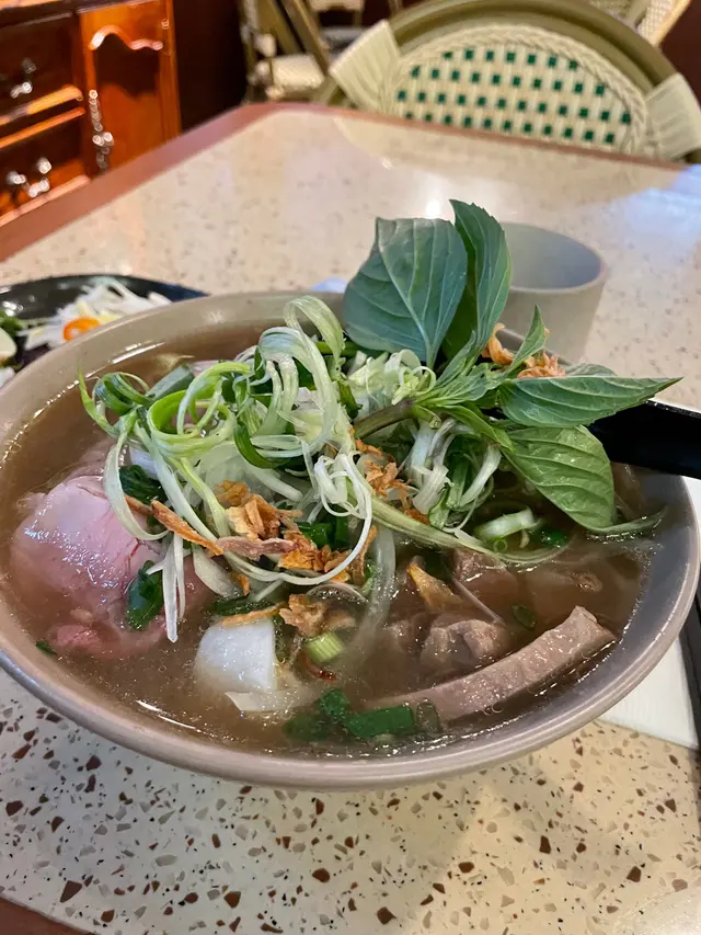 在上環逛逛看到了這間裝修充滿時尚的越南餐廳,便二話不說,進店試試。餐廳內的裝修亦沒有令人失望,喜歡它的地板懷舊花紋加上吊燈,舒適。服務質素因十分好,水會提供,有淡淡的青瓜味道。亦會細心地幫我添水,不用我要求。食物的選擇很多,我卻鍾情一碗phô. 點了火車頭金邊粉。賣相很好,味道都十分好。湯底的牛骨味很香,生牛肉的油香十足,牛丸是純牛丸,不過牛味不錯。份量亦足夠我成年男滿足。可算是對得住$168的價錢了。…查看更多