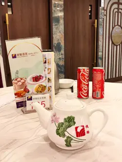 瓷杯、瓷碟、瓷碗、茶壺均印有酒家中文名和荷花圖案,清雅秀麗,散發一種淑女氣質。 ❤_❤