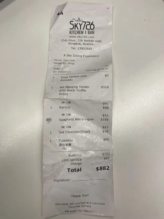 主菜餐牌 8月生日有88折見網上啲評論吾錯 環境又好似幾有feel 所以都有啲期望 就喺OpenRice訂左位試試佢由於預訂位時 知道可向餐廳要求坐窗邊位置 餐廳亦有寫明未必能配合所有要求 但會儘量安排 (心諗如果生日有靚景就好 有就當係bonus )當日book左8:30pm 但我地8pm就到左 岀示有關訂枱資料後 由於未有枱 侍應叫我地留底電話號碼 等如果有枱就可以通知我地提前入座 於是我地喺樓下行下 到8:30pm上到去 見到有啲枱既客人已離開 但完全冇人去執枱🤷🏼♀️ 而後面陸續有客排住隊等入座…最後我地8:45pm先入座 上菜速度極慢 等左好耐 食物真的很一般不過有讚的地方係👇🏻Tiramisu甜品寫埋祝福語句 打卡一流侍應會主動幫客人影相📸整體性價比低 幫襯一次就可以了 …查看更多
