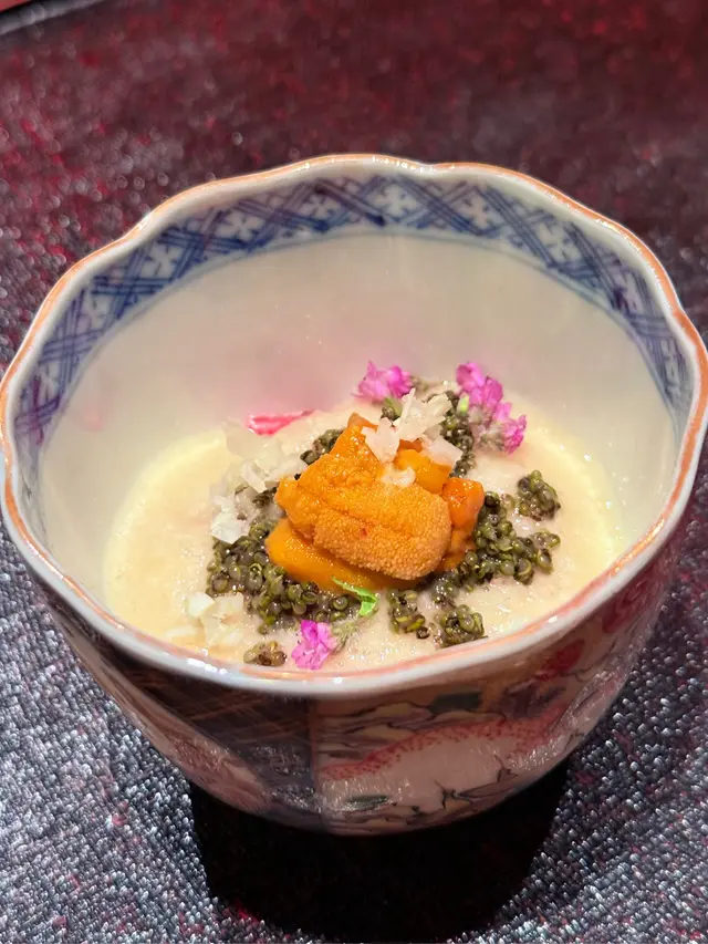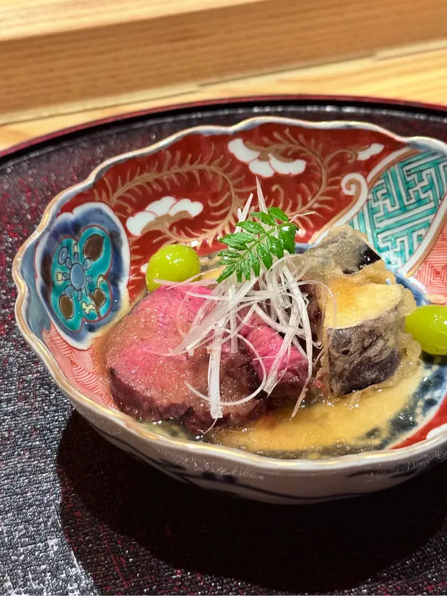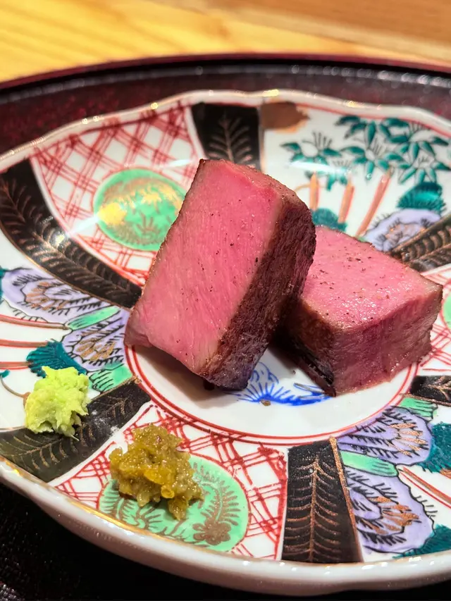 🍽️ Nikutoieba Matsuda餐廳位於上環歌賦街,細小而有日式氣氛 🇯🇵,吧枱設計令客人可以近距離欣賞師傅處理和牛的過程 🔪🔥,火候、切工一目了然,整個用餐感覺有點像看表演 🎭。午市套餐有十二道菜 🍱,價錢在高級和牛割烹來說算是相對親民 💰,但菜式種類、用料同細緻度完全有晚市級水準 ✨。 🐮 昆布漬和牛刺身配長芋、地膚子、海膽及紫蘇花穗食前拌勻 🥢,長芋帶微黏滑感但非常清爽 🌿,幾乎無多餘調味,和牛本身的甜味同海膽的鮮香 🧡,口感柔滑但不油膩。 🔥🐮 炭燒和牛配秋茄子、銀杏、山椒大根蓉同木の芽和牛邊位帶輕微焦香 🔥,油脂感偏清爽,山椒醬汁配上和牛吃味道很特別 🌶️。 🐮 藁燒和牛牛舌厚切牛舌嫩滑彈牙 😋,外層帶煙燻香 🔥,裏面保持肉汁 🥩,可按個人口味配 wasabi 或柚子胡椒 🌿,前者突出牛味,後者加多一層清新的辛香 🍋。 🍣🐮 和牛里脊他他配醃黃蘿蔔同海苔壽司酸甜爽脆的蘿蔔 🥒 及和牛油香配合得天衣無縫 💫,米飯吸收肉汁 🍚,整體味道平衡又有層次。 🍲🐮 和牛雲吞椀物牛清湯打底 🥣,入口暖胃,湯底帶淡淡牛香而不厚重,配上菊花 🌼、生薑及白蔥 🧅,解膩之餘依然吃到牛味。 🥪🐮 吉列和牛菲力三文治外層香脆 🧈,油脂香配上帶微甜的自家製奈良漬他他醬與醬汁 🍶,酸甜鹹度拿捏得剛好,完全令人想「encore」幾件 🤤。 🥩🔥 炭燒熟成和牛西冷配牛蒡、無花果、山椒醬和水田芥西冷經過熟成後牛味更加濃郁 💥,肉質有咬口但不韌,每片都鎖住肉汁 💧;牛蒡與無花果帶微甜,味道層次豐富。 🍲🐮 和牛里脊壽喜燒配栗子炊飯 漬物壽喜燒醬汁甜鹹分明 🍳,和牛吸飽醬汁後蘸上蛋液,口感柔滑 🍮,剩餘蛋黃和醬汁拌栗子飯 🌰,帶淡淡栗香香氣撲鼻。 🍛 主食三選一:和牛咖哩飯、和牛肉醬意粉或和牛素麵🍛 我選了和牛咖哩飯,咖哩帶濃厚香料味但辣度溫和 🌶️,和牛粒軟嫩入味。 🍧 甜品:自家製南瓜 Gelato 綿滑香濃 🎃,甜度適中,為整餐畫上完美句號 ✨。 …查看更多