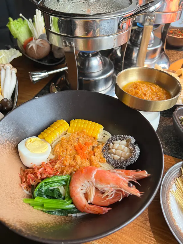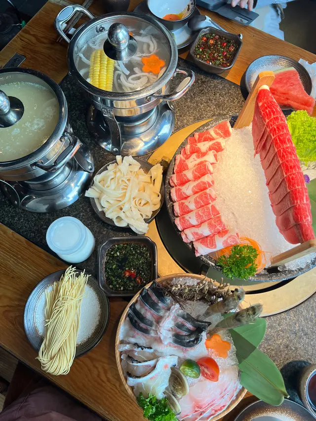 特別推薦大滾友火鍋自家特色湯底,口味獨特,真係食過返尋味😋新品翻雲覆乳—香濃豆乳蜜瓜龍躉雞湯鍋🥛🍈融合咗香濃豆乳、清甜嘅蜜瓜,搭配鮮甜又厚肉嘅龍躉。蜜瓜家持下的湯底鮮美滑嫩,店員提醒我哋落其他火鍋配料之前,一定要飲返兩碗,真係超級滋潤🤩大滾友牛肉拼盤 牛肉拼盤質量極高,肉質鮮嫩,包括頂級安格斯牛小排、本地手切牛頸脊、牛展、美國頂級雪花肥牛、牛黃喉、牛肉粒、牛舌花等等。選擇多樣,滿足不同口味需要。伊比利亞橡果豬伊比利亞橡果豬特色係肉質細膩,油花分佈均勻。口感豐富,同時帶有濃郁的豬肉香氣,但係又唔覺得油膩,不喜歡食牛嘅朋友一定必點。黃金藏嬌和牛墨魚丸墨魚丸口感彈牙,內餡飽滿,原來包住咗和牛,一咬食令人回味無窮。大滾友餃子拼盤餃子皮薄餡靚,各種口味的餃子搭配火鍋,感受到家的味道,係必點之選。特別欣賞蟹肉同韭菜餃,鮮味十足。日本稻庭烏冬稻庭烏冬口感滑順又彈牙,搭配蜜瓜龍躉雞湯鍋好合適。食到勁飽竟然仲有甜品,係火焰焦糖豆腐花🔥倒入少量酒,再用火槍燒到表面的黃糖焦香,豆腐花入口即化,真係好正。自家製足料竹蔗茅根清甜消暑,同時可以解膩,最緊要唔太甜,大人小朋友都啱飲😗…查看更多