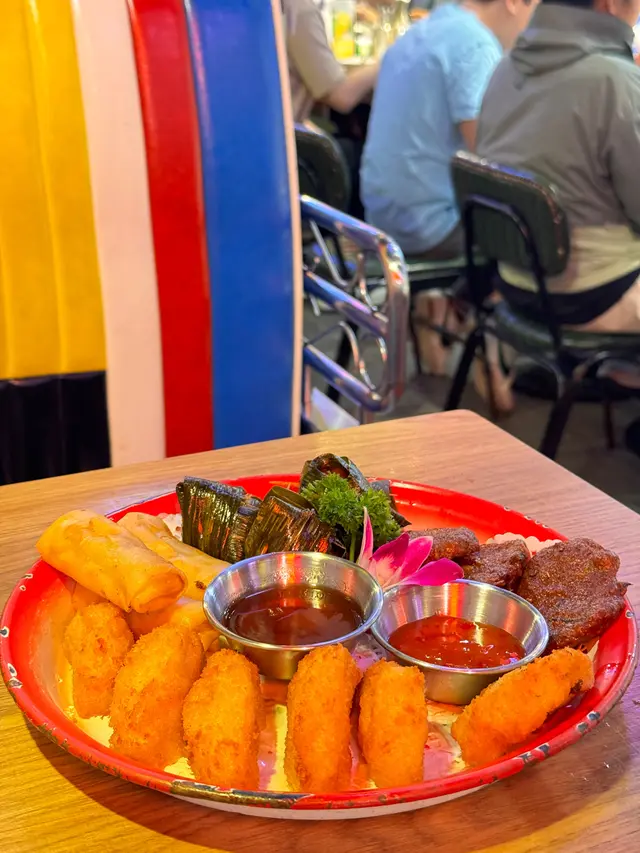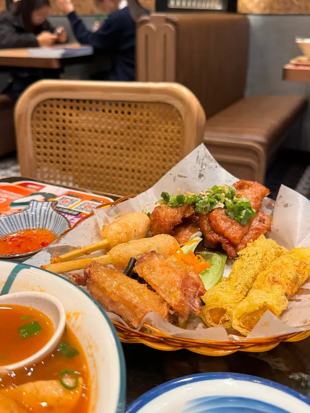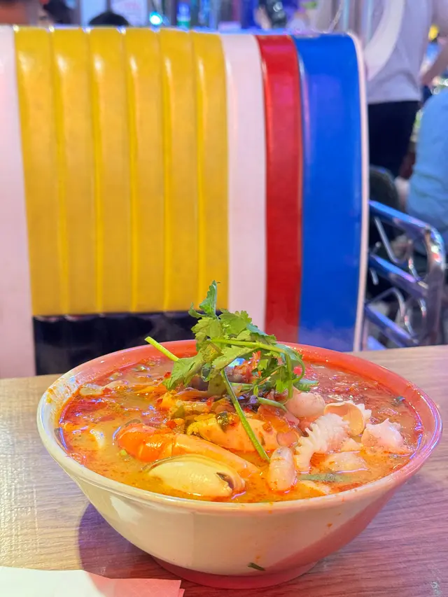 📍泰嘟嘟 Thai Tuk Tuk (大角咀)同朋友去奧海城行完,唔想商場搵餐廳,出去搵左間餐廳食,搵左去到都已經full full地的泰國餐廳,入到去係tuk tuk style已經好有泰國feel!!冬蔭公海鮮金邊粉冬蔭公湯底夠濃夠辣夠惹味,海鮮都有唔少,有蠔、大蝦、魷魚等等!串燒沙嗲 (半打)叫了一半豬一半雞,醬汁好惹味,而雞肉串好嫩口,豬肉串好好味!小食拼盤(大)蝦餅有3件,好彈牙啖啖肉,好滿足!春卷都有3件,份量都唔細,香葉雞有特色,有層葉包著雞,雞都好嫩口,魚餅都大塊,配上兩個醬汁好醬汁都好食!馬拉盞炒通菜一上台份量比想像中多,馬拉盞配通菜唔會輸!!!!仲有佢地既套餐都抵食!…查看更多
