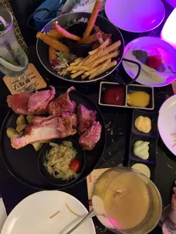 睇大家嘅食評,個個寫到好似小說咁,都令到我有少少懷疑究竟係咪真係食客寫的。不過睇到照片環境又靚,食物嘅選擇都多,價錢又合理都可以試吓。呢間餐廳有shisha bar , 原本都諗應該唔會好適合小朋友去。我個囡囡鍾意坐外面,環境好好,餐廳嘅哥哥姐姐都會好關心咁怕佢聞到煙味,結果坐咗一陣都安排咗我哋坐喺裏面。裏面嘅環境好寬敞,係另外一番風味。呢度嘅飲品好多款式,我就有嚟得切happy hour 優惠叫咗杯Riesling ,非常大杯。食物都唔錯, $128小食拼盤可以揀四款,好抵食。芝士條同芝麻雞翼都好好味,又有好多唔同嘅醬汁可以點。意粉同火焰豬手都不錯,火焰豬手有看頭。餐廳哥哥仲等我哋影埋相先,之後仲Offer幫我哋切埋。所以真係好感謝佢哋嘅服務令到我哋有愉快嘅一晚。下次我哋會再嚟㗎!…查看更多