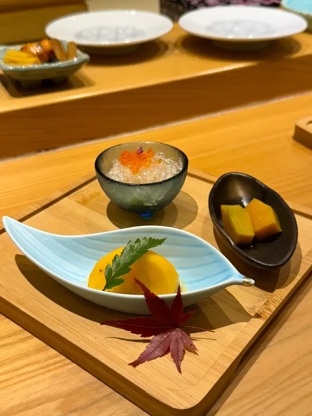 前排去咗呢間廚師發辦,成個體驗好驚喜!由前菜到甜品,每一道都睇到師傅嘅心思,食材新鮮到不得了,壽司飯嘅溫度同酸度都拿捏得啱啱好,真心推薦比鍾意食 omakase 嘅你!😍<前菜:富有柿・南瓜・梅水晶>以清甜嘅富有柿同粉糯南瓜打開味蕾,梅水晶爽脆帶微酸,好開胃!<蜜柑雕>帶住淡淡蜜柑香氣,魚身爽口,味道清新自然,好有驚喜!<深海大池魚>魚味濃郁,油份適中,口感爽彈,簡單以醬油提鮮已經好正。<白蝦>黏黏糯糯嘅口感好得意,鮮甜味慢慢滲出,搭配醋飯簡直一絕。<北海道三文魚>油脂甘香,入口即化,仲帶有北海道魚嘅獨特甜味。<扇貝>超大粒又厚身,鮮甜到似喺海入面直接撈起!<野生油甘魚>油香豐腴,配上自家製麵豉醬,鹹香帶甜,層次即刻豐富咗。<新鮮北寄貝>貝肉爽脆,加咗柚子皮碎,味道立即變得清新解膩。<鮫鰈魚>鮫鰈魚鮮甜,上面搭配灸燒過魚邊,油香爆發出嚟,同淡身嘅魚肉形成對比,好考功夫!<金目鯛>皮香肉嫩,魚油甘甜,淡雅得嚟好有深度。<赤貝>爽脆到有「嚓」一聲,海水味鮮明,絕對係新鮮貨色。<赤身>吞拿魚背部魚肉,口感緊實,魚味濃厚,醬油漬過更加惹味。<油鯛魚>輕輕火炙,逼出魚油,灑上炒香芝麻,香氣十足。<銀鱈魚>油脂極豐,入口即化,像食緊魚版牛油咁滑溜。<中拖羅>油脂比例剛剛好,唔會太膩,餘韻悠長,大滿足!<麵豉湯>暖笠笠,味道溫和,飲完成個胃好舒服。<抹茶奶凍>抹茶味濃而不苦,奶凍滑溜,為豐富嘅一餐作完美結尾。…查看更多