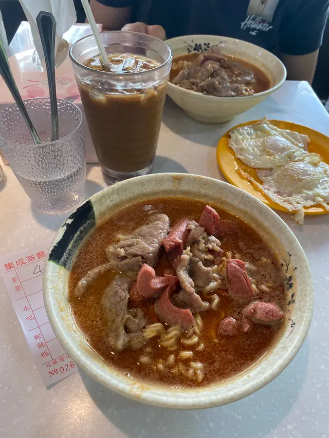 一入門口就見到已經大排長龍既隊2人位等左10分鐘左右可以入座餐廳坐位位置非常迫,如果不喜歡這種感覺的就建議不要來基本上每枱都叫既餐,主要都係叫沙嗲牛,仲可以任選兩款配料,我地一人叫一款,一個叫左麵,一個叫左米通,另一種配料最多人叫既係紅腸,紅腸係有炸過的…查看更多