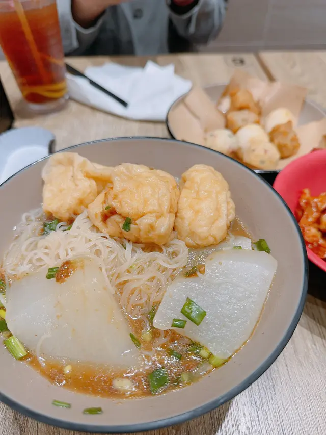 位於土瓜灣北帝街既特色小店車仔麵鋪店內大概25個坐位左右,位之間不會太迫Menu 到好多餸選擇,比一般車仔麵鋪多(豆卜蘿蔔酸𪗋米粉)+沙嗲汁湯底比較濃味,沙嗲汁都好味,佢啲餸入味,米粉就偏淋一點(朋友叫左個紅腸豬腸豬皮粗麵)+腩汁小食(生炸潮汕三寶)有墨魚丸,豬肉丸,魷魚丸好食值得一試另外佢有辣菜圃,但佢比較偏辣,喜歡吃辣的可以一試少少…查看更多