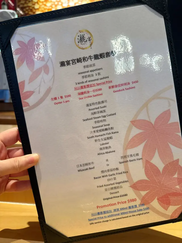 每年好姊妹生日, 鐵板燒成為了我們聚會嘅約定! 提前book咗呢間位於銅鑼灣Sugar+高層嘅鐵板燒, 居高臨下, 視野開揚。餐廳有間房設計, 當晚就間咗房比人包場, 除了鐵板位, 都有好幾張TABLE SEATS。見到呢個Promote set咁豐富, 價錢相對抵, 就order咗呢個set。【瀧宴宮崎和牛龍蝦套餐】HK$980/位前菜: 水云菜、海鮮沙律、薯仔沙律每款份量精緻, 水云菜酸酸地, 非常開胃。刺身三款: 包括有深海池魚、鰹魚、赤蝦, 其中赤蝦肥美爽口。雜錦魚生飯: 數款切粒魚生切成細粒再加上鮮美海膽, 配上少少醋飯, 口感同味道同樣滿足。海鮮茶碗蒸: 甜甜地兼嫩滑得入口即化嘅蒸蛋上, 加了些少蟹肉碎, 更為鮮味。蜆湯: 味道清甜, 有大量海帶同埋兩隻蜆。汁煮愛媛縣鰤魚鮫: 鰤魚鮫煮得好林又入味, 甜甜地, 配有蘿蔔等配料, 吃出了汁煮嘅精髓。終於到鐵板鐵環節, 每人可享半隻龍蝦: 師傅以龍蝦膏將龍蝦肉炒起, 每件龍蝦平均包住了甘黃色龍蝦膏, 甘香鮮味, 不過口感未算爽, 反而偏林。南非鮑魚: 整個併盤上檯打卡時, 鮑魚超生猛咁蠕動, 師傅將鮑魚切片燒, 口感爽彈有鮮味。日本宮崎和牛: 肉質鮮嫩有肉汁, 咀嚼時滲出牛脂, 配有炸蒜片同埋酸汁洋蔥, 用作平均油膩。煙肉香蒜炒飯: 炒飯炒得粒粒分明, 夾集煙肉、蒜粒, 非常香口, on top再加隻蘭黃太陽蛋, 蛋味突出。最後送上炒什菜同埋是日甜品—芝麻奶凍。整個套餐夠哂豐富, 飽肚感十足!…查看更多
