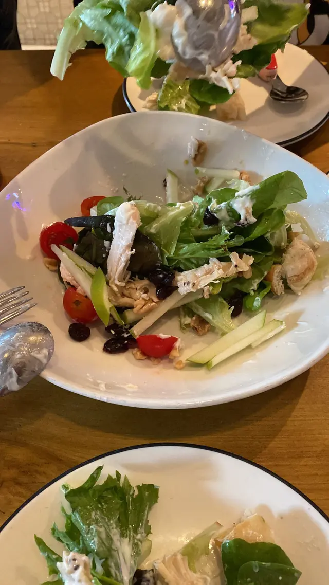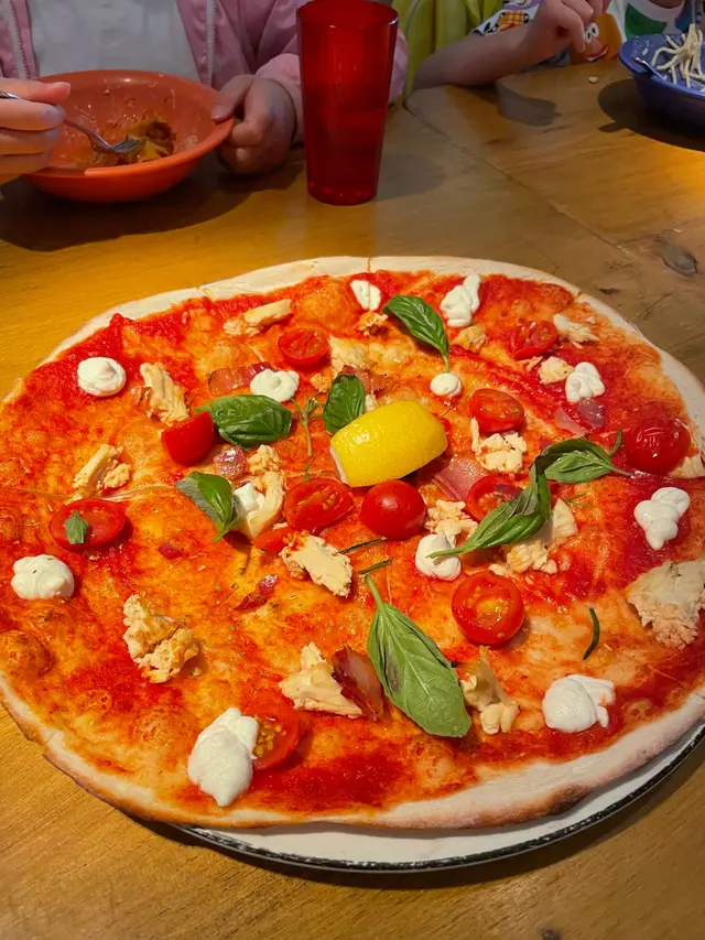 假期帶班小朋友去愉景灣曆奇王國放電,最後我比佢地放曬我d電,🥵🥵熱辣辣我梗係要搵間餐廳食下野叉叉電,再同佢地作戰附近餐廳選擇都多,最後應佢地要求去左食pizzaPizzaExpress,環境舒適,入面裝修特別得黎又幾靚,staff都好nice簡單叫左幾樣野,雞肉蘋果沙律;入面有雞肉、青蘋果、核桃、青菜沙律,紅莓乾……,入口清新爽口,令我胃口大開蜜糖雞肉pizza;餅底夠薄,甜甜地嘅pizza🍕,好岩小朋友口味,好快就比佢地消滅左肉醬千層寬麵,熱辣辣嘅千層麵表面已濃厚嘅芝士包裹著,餡料味濃郁,口感豐富!食落每一啖都有濃濃的芝士好邪惡卡邦尼意粉,口感幼滑,蛋香,芝士和煙肉香都俱全,食到lam lam 脷蒜香新豬肉螺絲粉;新豬肉無論味道口感都同真豬肉一樣,加埋蘑菇同火箭菜一齊食都唔錯總括黎講,愉景灣PizzaExpree係一間唔錯嘅餐廳➕埋個海景就更加分,食完野羅埋張單仲可以換回程船飛(120蚊換一張)好低吖😁😁…查看更多