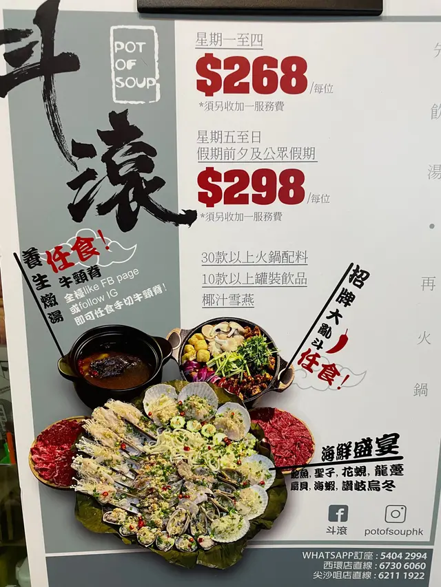 之前自己同朋友食過「斗滾」覺得唔錯,所以今日帶屋企人去試試!👭🏻👭🏻入到去檯與檯之前就有啲啲逼,但我地6個人比左8個位嘅檯比我地,坐落都算舒服!🫰🫰坐低後,侍應哥仔就即刻幫我地落雞煲,雞煲要自己炒,每2分鐘翻炒一次,前後4次就可以食啦!雞肉好嫩滑惹味,完全唔比食雞煲專門店差,真係好好味啊,因為係任食,所以我地叫左兩轉,食到大家lamlam 脷😋😋係食緊第二轉雞煲嘅時候,已經幫我地蒸好盤無敵大的海鮮啦!海鮮盤有「聖子、鮑魚、扇貝、海蝦、龍躉、烏冬」海鮮十分新鮮,用簡單嘅蒜蓉蒸,夠鮮甜美味!烏冬吸曬各款海鮮嘅精華,真係一絕😍😋食左海鮮已經感覺少少飽了,再上個蟲草花烏雞湯,個湯夠甜,唔似味精湯!🫕🫕飲湯嘅同時,已經幫我地上埋打邊爐用嘅番茄薯仔花甲湯,哇!好正吖!🍅🥔like 社交平台可以無限送手切牛頸脊,牛頸脊高質,啲肉唔鞋好嫩滑,出面仲有丸,菜,飲品自助!好飽,好飽,真係好飽吖!最後還有甜品每人一客鮮奶雪燕,真係由坐低食到走!滿足😋😋…查看更多