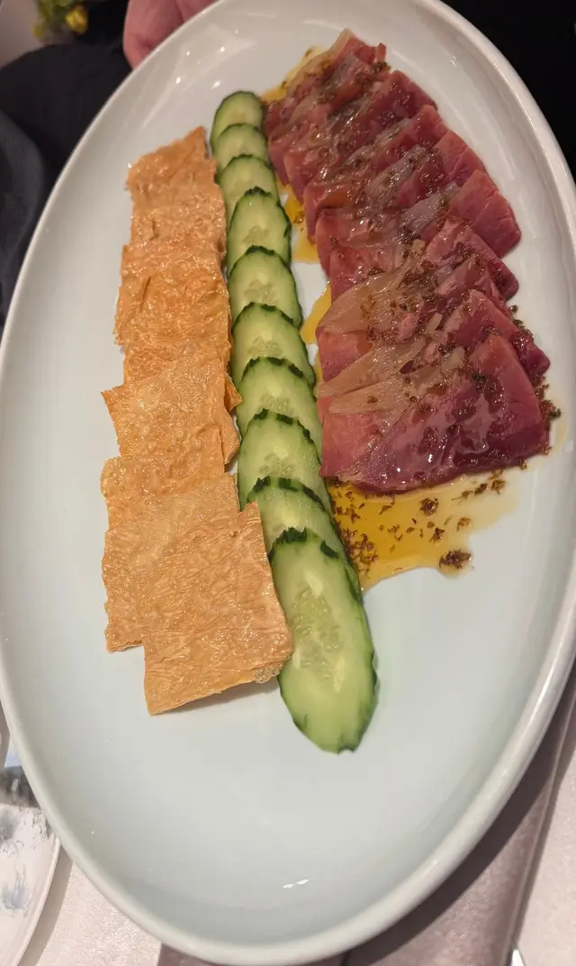 明星金閣環境不華麗, 勝在地點方便(四方好友), 飯後各人回家路也不遠.近這幾次光顧, 發覺味道火候都進步了. 之前是貪就腳, 可以坐得耐. 然而這幾次, 食物味道大大改善了. 上次吃了一個牛尾, 一向不會點來吃的, 味道出呼意料的好味, 炆得剛好, 不柴皮, 有咬感. 餐牌久不久會更新, 不如十年如一日. 有時有特價菜式. 如今日, 三個小菜, 就可以特惠價, 加配半邊龍蝦仔. 龍蝦肉質鮮甜, 不是將價就貨. 其他菜式, 材料新鮮, 份量適中, 味道恰如其味. 小小的一層, 常常高朋滿座, 總有其原因. …查看更多