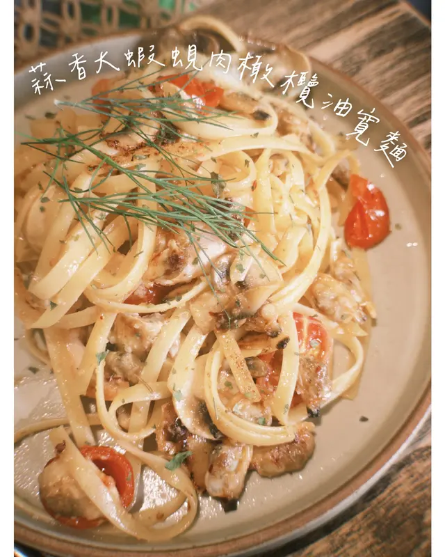 Everglow Coffee .📍上水智昌路8號順欣花園地下5A號舖📞 3568 0921💰人均消費:$100 - $120📸打卡指數:📸 📸📸(4/5). Everglow Coffee ☕️係我覺得數一數二北區嚟講都幾高質嘅cafe,所以我放假有時間又唔想出咁遠食嘢就會去食。Everglow Coffee 外觀以紅磚牆 包圍,內部就係以水泥風格搭配簡約嘅木系家具,不過空間唔係大,只有4 張細枱同bar 枱位置,坐得唔算舒服 🥲。今次等位大概都等咗20 分鐘,同埋只有一位廚師,出餐速度比較慢,所以要預番啲時間去等候,趕時間嘅話最好落單前問一問要等幾耐比較好。今次我就叫咗兩道菜式: 蒜香大蝦蜆肉橄欖油寛麵 🍝 同埋🇪🇸西班牙火腿乳酪芝士配竹炭酸種麵包,嘢飲就叫咗Americano,保持到一向水準 👍🏻,鐘意飲啡嘅朋友值得去試下,但菜式整體都令我覺得有啲失望 😣。🍝 蒜香大蝦蜆肉橄欖油寛麵 💰98⭐️推薦:⭐️⭐️(2/5)依道菜上枱嘅時候心諗明明係叫大蝦蜆肉意粉,點解唔見有大蝦 🍤,望真啲原來係收埋係意粉到,大蝦個size 就比較細,大就稱不上,如果下次可以放上面同大隻番啲就更加好。大蝦同蜆肉都係急凍,味道都正常,冇乜特別,寛麵就好似未煮熟咁,中間個心仲好硬,整體辣味 🥵唔算太重,所以唔太鍾意太辣嘅朋友都應該可以接受到。🇪🇸西班牙火腿乳酪 芝士配竹炭酸種麵包💰98⭐️推薦:⭐️(1/5)西班牙火腿同乳酪嘅搭配都幾令我覺得驚喜,不過我就覺得味道好似爭少少咁 🧐,如果可以加番啲蜜糖 🍯,層次我覺得會再豐富啲,平衡到乳酪嘅酸味,又可以更好帶出火腿嘅風味。雖然擺盤幾有心思 👍🏻,但係乳酪比較稀身,浸軟咗底下嘅Sourdough,中間完全濕到變糊狀 😢,令到我無辦法好好享受Sourdough 嘅口感,依點比較失望。如果Sourdough可以單獨放埋一邊,或用啲比較結實嘅乳酪,效果應該會比較好。以上水地區嚟講,價格都算中等偏高。考慮到等候時間同嘢食嘅整體表現,我覺得仲有提升空間,希望Everglow Coffee 之後會有所改進。…查看更多