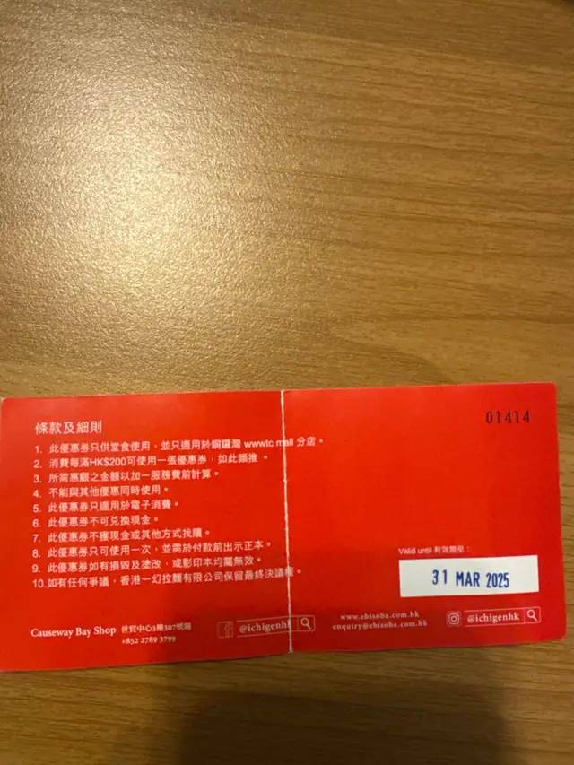 我今晚點了二人套餐,而且手上有世貿中心商場新春活動的優惠券,優惠券上條款寫明在一幻消費滿$200可以減$100。但到付款的時候,店員說優惠券只能單人餐時才可使用,二人套餐並不能使用。我同佢講優惠券上條款沒有這樣寫,這店員不斷重複叫我可以投訴給他們的老闆,投訴電話就在優惠券背面。當我離開店後,在門口出面觀看,我就打電話嘗試投訴,但電話通了對方沒有回應就收我線。我看到根本就是接電話的店員認得出是我剛才買單的客人,所以他就故意收我線。對於這種行為,我以後不會再光顧這間店。也想藉着這機會,提醒看到這文章的各位,消費前請再三謹慎考慮!附上優惠券圖片以作證明,條款上根本沒有寫要多人套餐才可使用。…查看更多