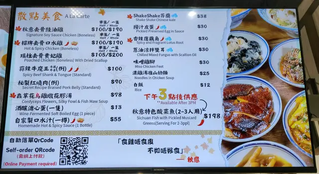 「秋意」繼觀塘分店後,七月正式進軍港島區,以外賣為主打,為繁忙都市人帶來既方便又精緻的美食。餐單豐富選擇多,由開胃小食到主食到自家制飲品,每一款都誠意十足。小食方面,蔥油涼拌雙耳清新爽脆,木耳與銀耳混合口感多變,蔥油香氣撲鼻;味噌雞腳則是意外驚喜,入味之餘不失彈牙,帶點日式風情;撈汁皮蛋鹹香惹味,汁料平衡得宜,成功提升整體層次感。主食方面,「秋意去骨豉油雞配蝦蝦冷拌麵」雞肉嫩滑、豉油香濃,冷麵則清爽微辣,配合得恰到好處;蒜辣牛魔王夠火氣,牛展入味、牛舌嫩滑,配白飯令人回味無窮;酒釀溏心蛋甜中帶酒香,流心蛋黃恰到好處,有畫龍點睛的效果。飲品方面,玫瑰花山楂飲酸甜開胃;羅漢果菊花茶潤喉清熱。總結,小店食物製作用心,高質美味,份量十足,價格合理,港島區街坊不容錯過。…查看更多