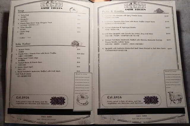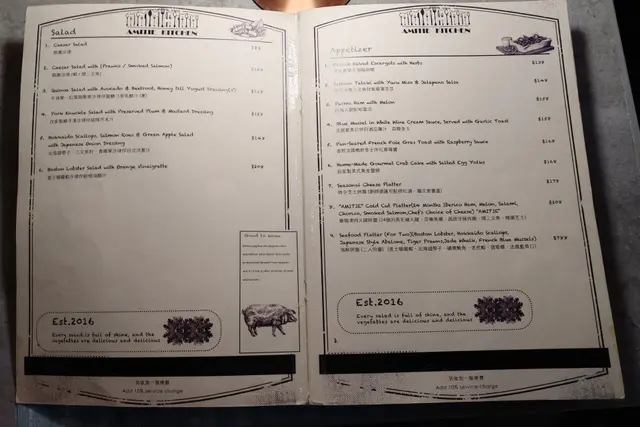 尖沙咀Amitie Kitchen位於H8 9樓,主打西式料理,由曾任職五星級酒店的主廚主理,吸引不少饕客慕名而來,一入到餐廳,浪漫既氣氛即時包圍住我哋,柔和燈光配上法式情調佈置,令人感覺溫馨又放鬆。揀選好餐點之後,店員隨即送上焗得香噴噴既麵包拼盤,包括牛角包、脆麵包捧及抹茶提子包,外脆內軟,香氣撲鼻,為整餐飯揭開序幕。火炙半熟吞拿魚伴柚子味噌醬:吞拿魚表面微炙,保留魚肉鮮嫩,配上清新微酸的柚子味噌醬,味道層次豐富。阿拉斯加比目魚柳:煎得外脆內嫩,魚肉細嫩無腥味,配菜多元化,擺盤亦相當講究。烤燒大啡菇、焗釀鮑魚、北海道帶子、虎蝦意大利飯拌龍蝦汁:海鮮飽滿又新鮮,意大利飯吸收龍蝦汁既精華,香濃惹味,放在大啡菇上面,每一口都充滿海洋風味。香橙乳酸梳打:酸甜清爽,橙香與乳酸味平衡得宜,非常解膩。士多啤梨朱古力窩夫伴士多啤梨雪糕:窩夫外脆內軟,朱古力味濃郁,配上士多啤梨、藍莓及雪糕,為整頓晚餐作完美作結。總結,餐廳不論環境、服務或食物質素都令人滿意,絕對值得再回訪。…查看更多