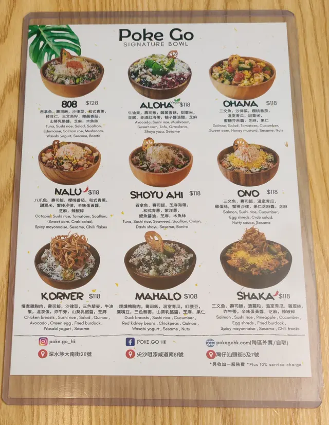 Poke Go係一間主打健康輕食既餐廳,主打夏威夷風味既Poke Bowl,無論係選擇困難症定係鍾意自由配搭既食客都照顧周到。餐廳提供多款精選Signature Bowl,其中「ONO」就係人氣之選,三文魚配壽司飯,配料有溫室青瓜、雞蛋絲、皇帝蟹棒,再加上果仁醬和芝麻,味道層次豐富,清新又飽肚。如果你鍾意自訂口味,Build Your Own Bowl就啱晒你,我揀左慢煮雞胸配珍珠糙飯、配料揀左甜粟米、麻醬豆腐、芝麻、海帶、果仁醬、木魚絲、脆蒜、紫菜絲、果仁,口感多變,營養均衡,每啖都食得出心思。小食: 香芋地瓜丸外脆內糯,芋香濃郁,係一個唔錯既開胃選擇。甜品: 芒果香脆雪糕餅令人驚喜,芒果香甜配上脆餅口感,清新又解膩。飲品: 熱蜂蜜綠茶同熱檸檬薑蜜都好暖胃,特別適合秋冬季節。總結,無論你係想快啲食飽定係慢慢享受,呢度總會有啱你既選擇。…查看更多