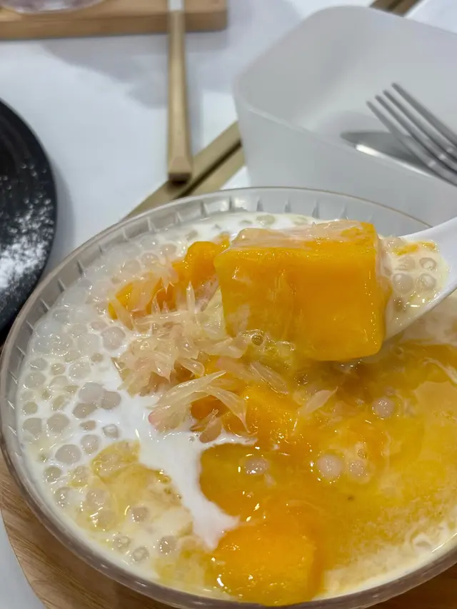佢哋出咗啲新嘢,有「芒芋之戀」同埋「芒圓丸」,兩款都有迷你小芋圓,淡淡芋頭香,煙煙韌韌!我比較鍾意「芒芋之戀」,台灣粉粿圓&西米露,配埋勁多芒果🥭,口感非常豐富,好飽肚😛仲有兩兄弟必點嘅「楊枝甘露」&「芒果椰果愛玉」,今日嘅芒果好大有鮮甜,幾款甜品都非常好食😋😋。貪心一啲,今日食埋「波波拼盤」,有炸燒賣、炸魚蛋、同薯條,小朋友最愛🤣!而我都每次必點「心太軟」,水準穩定,基本上都一定有留心效果,朱古力味濃郁,配雪糕一流,今日仲畫咗隻超靚嘅花碟😍😍😍😍呢度嘅飲品都唔弱,「蘋果玫瑰白桃沙冰」🩷粉紅色好靚,清香鮮甜又解暑!…Read More
