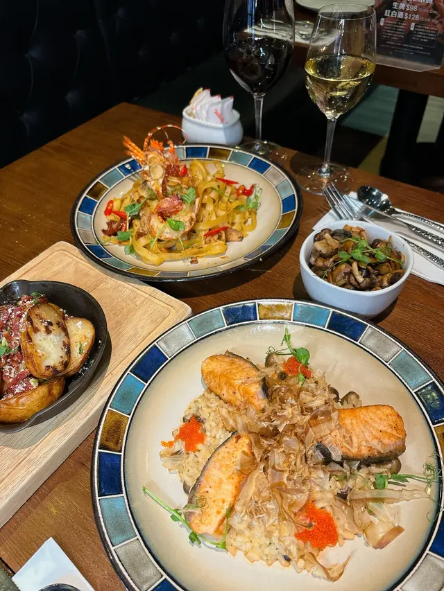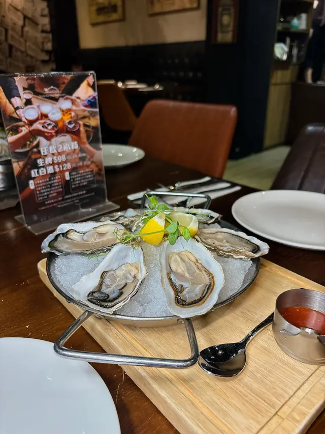 星期六晚同姊妹血拼完去咗荃灣**Sol House Oyster Bar And Restauran,貪佢夠靜又唔逼人,啱晒傾密偈👯♀️。餐廳燈光偏暗黃,枱面擺咗小蠟燭,播住輕爵士,坐喺軟皮卡位度,望住開放式廚房師傅手勢,成個氛圍好relax~🦪 時令生蠔 😍😍😍😍今晚係法國Gillardeau,海水味爆棚!蠔肉爽脆帶甜,跟嚟嘅檸檬同辣汁一啲都唔搶戲,食完仲有陣礦物回甘~🐟 意式醃製薄切煙三文魚 😍😍😍魚片薄到透光,蒔蘿酸忌廉汁清新醒胃,但煙燻味可以再突出啲,而家略嫌被醬汁蓋過。🍝 烤龍蝦配意式香辣蒜片闊條麵 😍😍😍😍龍蝦鉗肉彈牙到癲!蒜片炒到金黃脆口,闊條麵掛滿微辣蒜油,不過辣度可以再大膽啲🌶️。🍚 慢煮三文魚扒配蟹子昆布汁意大利飯 😍😍😍魚扒外皮煎香,肉質嫩滑到似豆腐,蟹子汁鮮味足,但飯芯可以再al dente多少少。🥔 烤薯仔配煙肉 😍😍薯仔外脆內軟,煙肉碎鹹香加分,不過份量細咗啲,兩啲就清碟⋯⋯🍍 焦糖菠蘿雪葩 😍😍😍😍冰涼酸甜平衡得靚,焦糖脆片同菠蘿果肉夾到震,食完油膩感全消~☕ 意大利咖啡蛋糕 😍😍咖啡味濃郁,但蛋糕身偏乾,如果夾層多啲 mascarpone 就完美啦!同好友一人一杯House Wine(白葡萄酒果香輕盈,紅酒醇厚唔澀),慢慢鋸住龍蝦、嗒生蠔,成晚節奏夠晒慢活✨。食物水準中上,環境加分,最正係冇人催交枱,傾到打烊都得~ 係甜品可以再精緻啲,但整體已經夠晒滿足!💖…查看更多