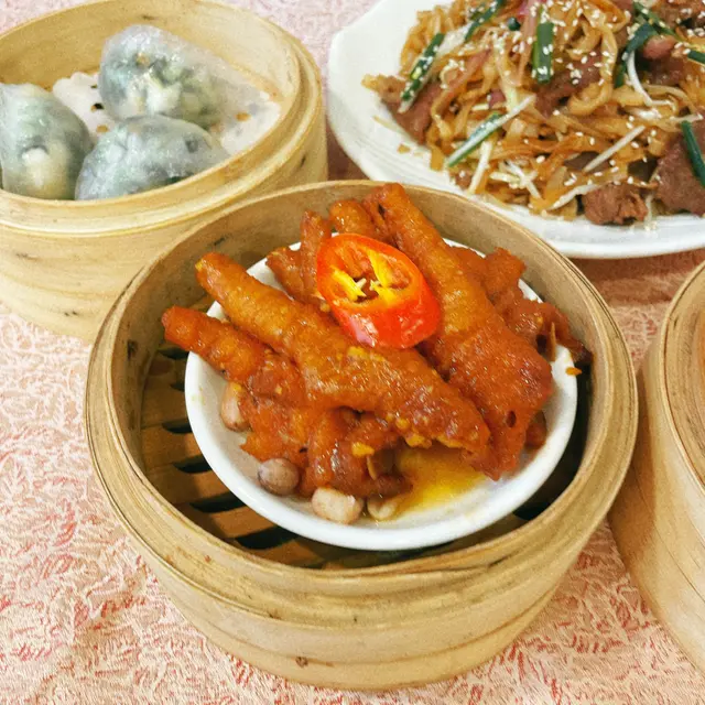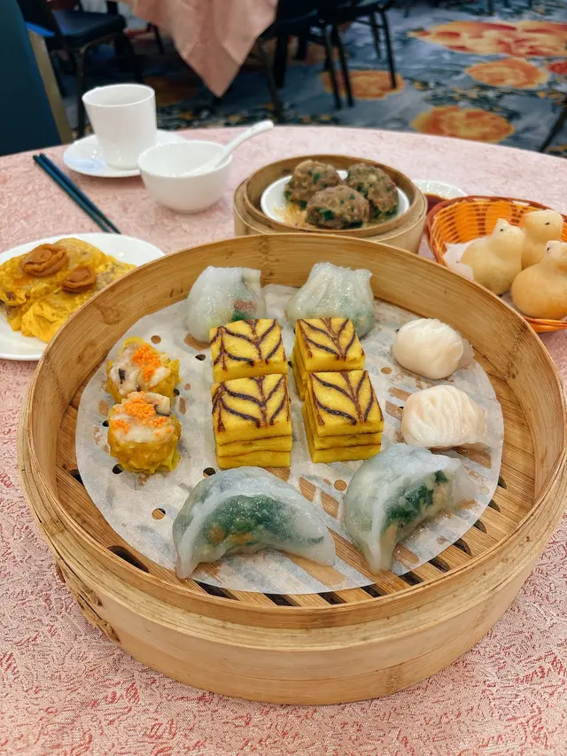 挑高天花垂落水晶吊燈💡,米白桌布映著窗外綠意🌿,半開放包廂飄來茶香。服務生白旗袍輕晃,默默添著菊花普洱☕,10%服務費付得心甘情願~冷氣剛好驅散盛夏黏膩,瓷勺碰碗的清脆聲裡,媽媽突然說:「妳小學最愛偷吃我飲茶的鳳爪呢」👩👧🦐鮮蝦燒賣皇 🤩🤩🤩🤩 掀開蒸籠那刻,蟹籽在琥珀色外皮上跳舞!咬下瞬間彈出整隻蝦仁🍤,混著豬肉餡爆出雞湯汁,媽媽笑著遞來辣椒油:「妳外公當年總說『燒賣要配浙醋才正』」...啊,是祠堂對面茶樓的味道呀🏮 🐔醬皇蒸鳳爪 🤩🤩🤩🤩🤩 絕對是時光機級單品✨!豆豉醬甜鹹平衡得像外婆的配方,膠質黏唇卻不爛。偷偷觀察👀:每隻鳳爪都剪趾對剖,吸飽醬汁的花生墊底。服務生上菜時特意放媽媽面前:「趁熱食最軟糯」——這種細節比茶位費值錢多了💰🥟鮮蝦菜苗餃 🤩🤩🤩 翠綠薄皮透著蝦影🦐,菠菜苗切得細碎仍有脆度。可惜蝦鮮被薑絲搶戲,媽媽突然吐槽:「妳爸第一次見家長就點這道,結果夾破皮汁噴到領帶」🤣 果然食物最會保存黑歷史啊~ 🐮星級乾炒牛河 🤩🤩🤩🤩½ 鑊氣衝進鼻腔🔥!安格斯牛肉帶粉紅芯,河粉每條都「色水均勻」沒醬油結塊。銀芽爽脆度💯,關鍵是碟底零餘油...隔壁桌大叔偷學擺盤技巧被抓包的樣子超可愛😆【服務彩蛋】 服務生會等我們聊到段落才收碟🍽️,續茶時自動避開手機拍攝角度。總結:人均$200吃出懷舊與精緻的完美平衡⚖️…查看更多