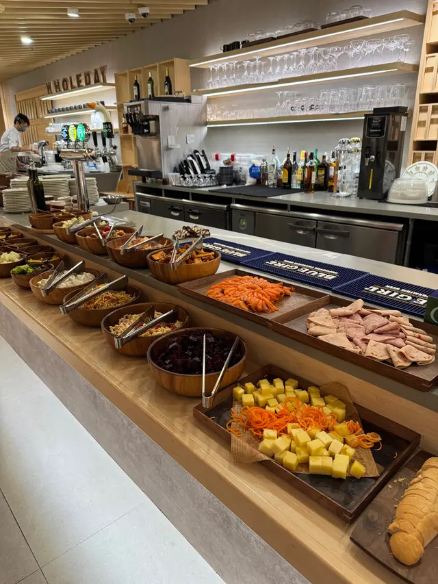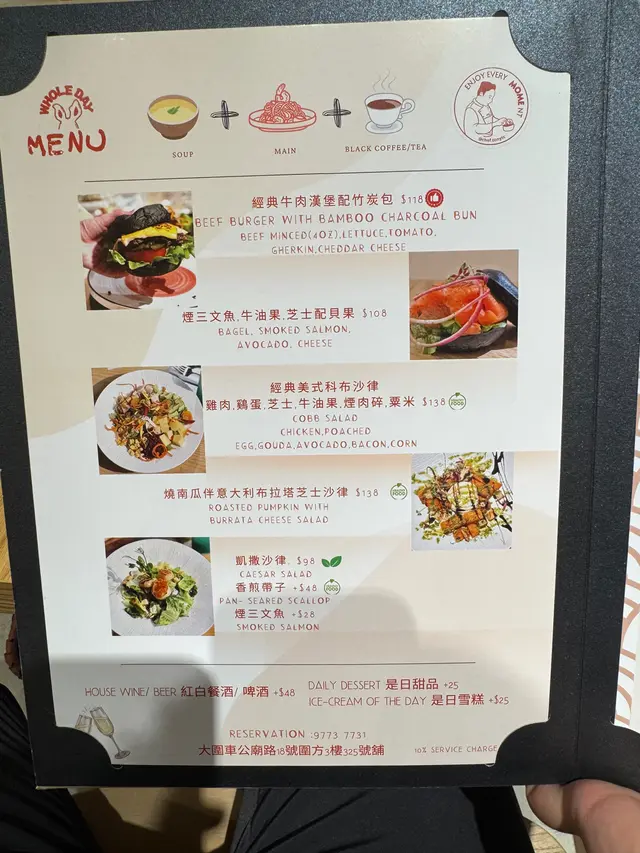 2025年10月15日 星期三今晚收工已經唔想買餸煮飯,一於同老婆兩個人係大圍搵間餐廳食就算行過圍方竟然見到呢間餐廳有半自助晚餐食,主菜都有幾多款式可以選擇,而且價錢都唔太貴,一於就入去試下餐廳環境都裝修得幾有風格,感覺好文青,用左大量木製傢俬,而且仲貼近萬聖節嘅關係,掛滿咗萬聖節嘅裝飾,充滿氣氛餐廳行到最入就有自助海鮮沙律吧,擺滿左各類食物,沙律都有6款菜可以揀,仲配有唔同醬汁,而且雖然海鮮只有幾款,不過全部都好新鮮,啲蝦勁大隻,完全唔黐殼,青口都好鮮甜我每樣都拎咗少少嚟試吓,煙三文魚幾厚身,煙熏味幾重,唔會太鹹,醃蕃茄同紅菜頭食完之後酸酸地更加開胃主菜我哋就要咗黑松露煙肉卡邦尼手工意大利粉,呢碟意粉一上枱就已經好吸睛,手工意粉煮得啱啱好,唔會太腍亦唔會太硬,口感有啲彈牙,咬落去有種「啖啖實在」嘅感覺醬汁方面,黑松露味唔會太霸道,但夠香,係種慢慢滲出嚟嘅幽香,配埋煙肉嘅鹹香同油脂,成件事好有層次煙肉煎到微微焦脆,上面仲有啲微型菜苗同食用花點綴,唔止靚,仲有少少清新感,令味道更平衡之後有白酒忌廉蟹肉手工粗管麵,粗管麵煮得啱啱好,外層滑身,入面仲保留到少少咬口,醬汁係白酒同忌廉混合,唔會太濃膩,反而有種淡淡酒香,令整體味道更有層次蟹肉份量唔算少,撈埋醬汁一齊食,鮮味即刻湧出嚟,好似喺口腔度爆開咁,唔係嗰種死鹹嘅海鮮味,而係清新又有深度上面灑咗啲香草同花瓣,唔止靚,仲有少少草本香氣,令味道更平衡甜品方面我哋要左是日雪糕,係北海道牛乳雪糕,雪糕質地超滑,唔係嗰種硬邦邦嘅冰感,而係柔軟得嚟又夠挺身,入口即化,仲帶住陣陣奶香,好似飲緊一杯高質牛奶咁味道方面,唔係死甜嗰種,而係有層次嘅甜味,前段係清新奶香,中段開始滲出微微乳脂嘅濃郁,食到尾仲有少少回甘,令人忍唔住一啖接一啖最後埋單大約七百蚊左右,食到勁飽!!…查看更多