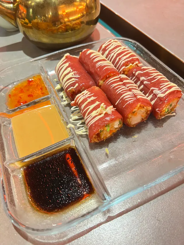 經過YouTuber介紹果然是人頭湧湧,今天中午來到觀塘的,龍點心看見餐牌色彩繽紛非常適合打卡。兩個人中午吃不多東西,叫了:一籠大滿足,這個就不用多介紹,打卡很好用,只是酸菜魚鳳眼餃比較辣。拉絲菠蘿包,就是芝芯菠蘿包,沒有拉絲效果,除非故意走去拉。富貴紅米腸,紅米腸皮包裹着炸蝦或條狀,配泰式辣將出奇地夾。鳳爪併金錢肚,三件金錢肚和三隻鳳爪,也是普通安全的菜式。羊肚菌燉水鴨燉湯出奇地好喝, 料也很多,份量也充足,起碼給人感覺不像是兩啖喝完的東西。整體環境乾淨,但冷氣不足,價錢也屬中上價格。…查看更多