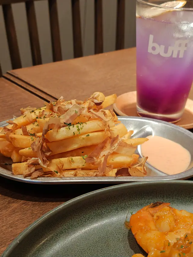 喺Joypolis Sports 放完電後當然要醫醫肚,記得去埋頂層4樓嘅餓虎藏龍😋提提你,唔需要買門票都可以直接去餐廳㗎!餐廳設有半露天坐位,可以飽覽270度啟德主場館景色,夾啱週末戶外位置仲有Live band駐場,可以一邊沉醉於音樂世界一邊享受美食✨鬼馬咕嚕Nachos 細細粒嘅菠蘿同咕嚕肉放上薄脆墨西哥粟米片估唔到又幾夾✨叛逆脆皮百花雞呢個只有金黃脆皮係用上雞皮,中間係非常彈牙嘅蝦膠仲有爽口蝦肉,可蘸附有嘅解膩冬瓜羹醬汁食✨餓虎藏龍擔擔麵可以揀唔辣,好啱放晒電嘅小朋友補充體力,麵身軟硬適中都幾掛湯汁✨名古屋土雞餃子配洋蔥薑酸醋汁 餃子好飽滿,雞肉餡肉嫩多汁,可蘸少少醬汁提味✨黃金花生醬單骨雞翼脆卜卜金黃外殼散發著濃郁香氣,起沙鹹蛋黃同花生醬滑順完美結合,雞翼帶輕微辣叫咗两杯顔色奪目嘅Mocktail✨Joypolis Sports主要係用菠蘿汁、柚子汁同梳打調制而成,再加Blue Curacao非酒精糖漿就會得出同Joypolis Sports場館主題相近嘅顏色✨Hinode用自家製洛神花糖漿、菠蘿、青檸調制,味道清新甜中帶微酸…查看更多