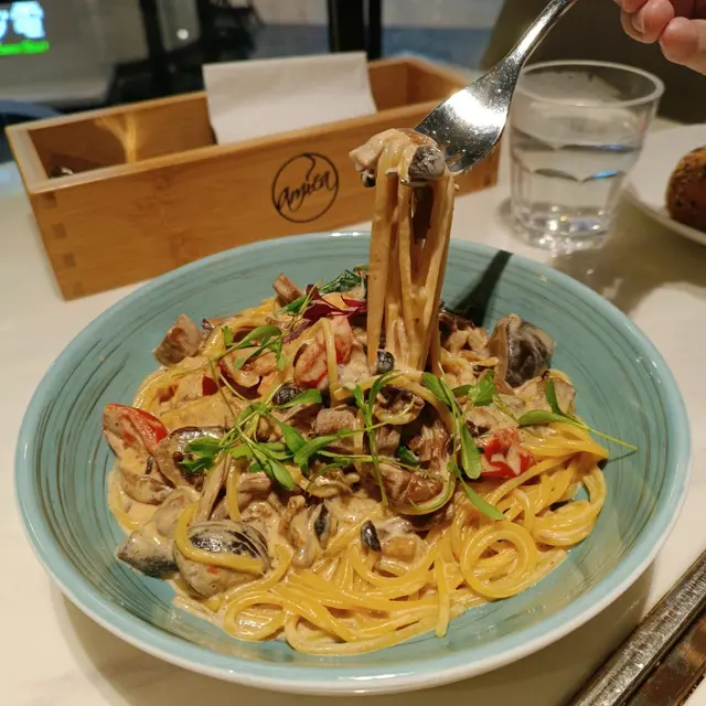 呢間餐廳好多人幫襯,我同朋友閒日夜晚嚟食飯,食食下啲人甚至開始要等位,真係好受歡迎!🍲是日餐湯 加$15是日餐湯係蘑菇忌廉湯,味道濃郁,滑口,非常開胃。🍝野菌意大利粉配牛肝菌醬 $98呢碟意粉份量都算多,醬汁濃郁,好掛汁,配搭大量嘅菇同番茄等配菜,增添咗口感同味道,好快就食哂。🍖燒西班牙豬肋骨配自製燒烤醬 $188呢個主菜配有沙律菜,豬肋骨燒得啱啱好,肉質嫩滑,份量都十足,配搭燒烤醬好有風味。🥤凍朱古力 $20 朱古力味道夠濃郁🍨特濃朱古力心太軟配雪糕 $68外脆內軟嘅心太軟,切開有流心效果,配上雪糕一齊食,非常好滿足~…查看更多