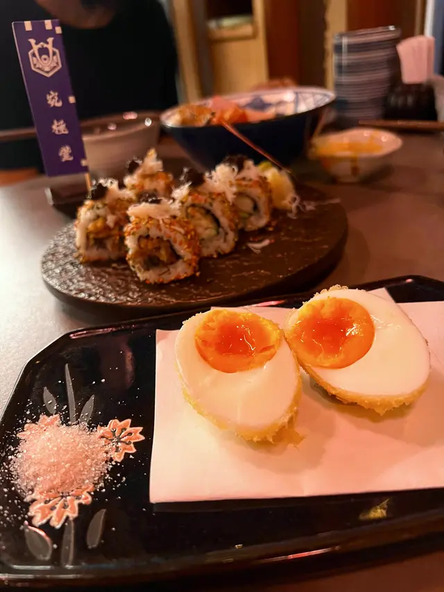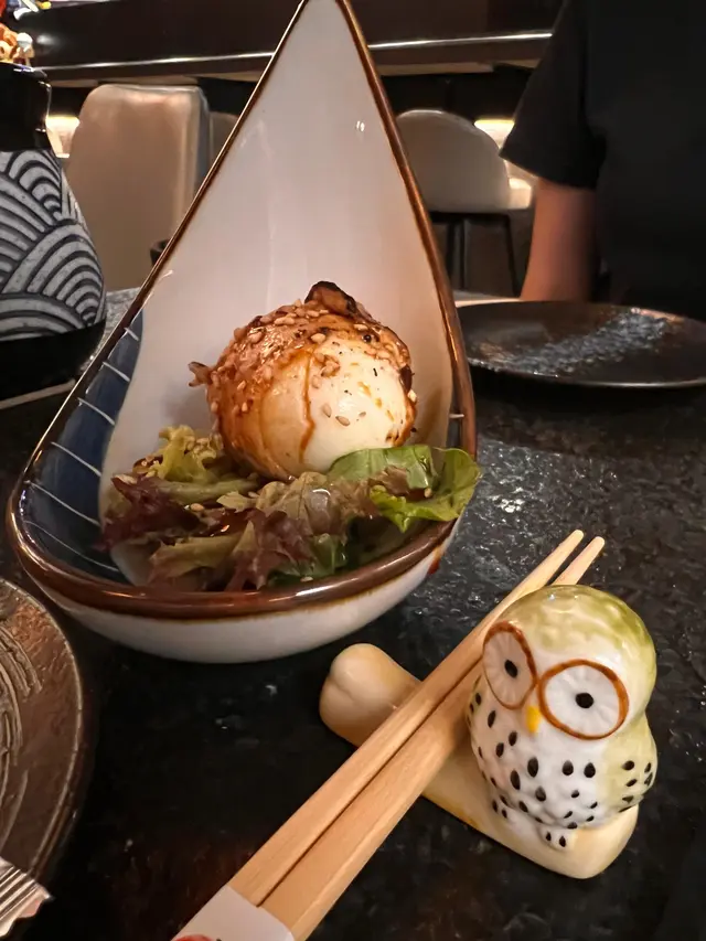 尖沙咀厚福街餐廳非常多,選擇都唔係咁易,今次搵到間樓上的居酒屋主打串燒,又幾好食,又抵食👍🏻先來個胡麻豆腐沙律,冷盤做得唔錯,胡麻醬夾豆腐就是出色,菜新鮮咬落疏疏聲🤟🏻。要咗個豚肉糖心蛋試下,第一次食,又幾得意,甜甜地好味。再來有明太子芝士玉子燒,又幾好,有芝士在內但唔膩,明太子醬非常之夾🙏🏻。一口牛舌芯串燒,係厚切,咬落口感非常正,好好食。免治雞肉棒配日本蛋,這個菜式我去任何一間居酒屋都會叫,這是我至愛,今次這個係正既,有水準👍🏻,點蛋係好好食。仲有串燒菠蘿,加左焦糖,熱食好正,甜甜地又多汁👍🏻。再來有燒飯團🍙,燒到個面有焦香,唔錯,少少脆口,恰到好處👍🏻。最後稻庭冷烏冬結尾,天氣熱,食冷盤舒服😌。整體都在水準又上,又抵食。…Read More