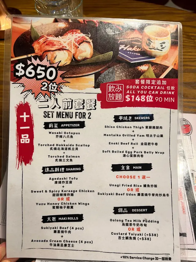 銅鑼灣世貿中心隔離有一棟新咗幾年嘅Office tower,有條自動電梯從地下上兩層,去到一間日式餐廳,座位幾有空間感,枱之間有足夠距離,可以同朋友慢慢傾偈。晚餐有個二人套餐,三款前菜+炸豆腐+炸雞+ 兩款壽司太卷+四本串燒包括雞肉,明太子山藥,肥牛金菇卷,糖心蛋豚肉卷+鰻魚炒飯,仲有牛奶布甸甜品。最喜歡吃甜甜辣辣炸雞,有蜜糖味好脆口。壽喜燒牛隻肉烏冬有溫泉蛋,食落滑嘟嘟好順口。Cocktail有個木箱嘅Menu俾大家選擇,大約有八款,我揀咗梅加入Whisky,又塊四方形嘅冰同埋有橙既香味,可以慢慢嘆。…Read More
