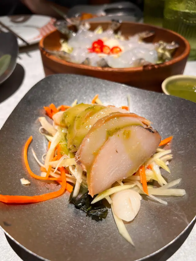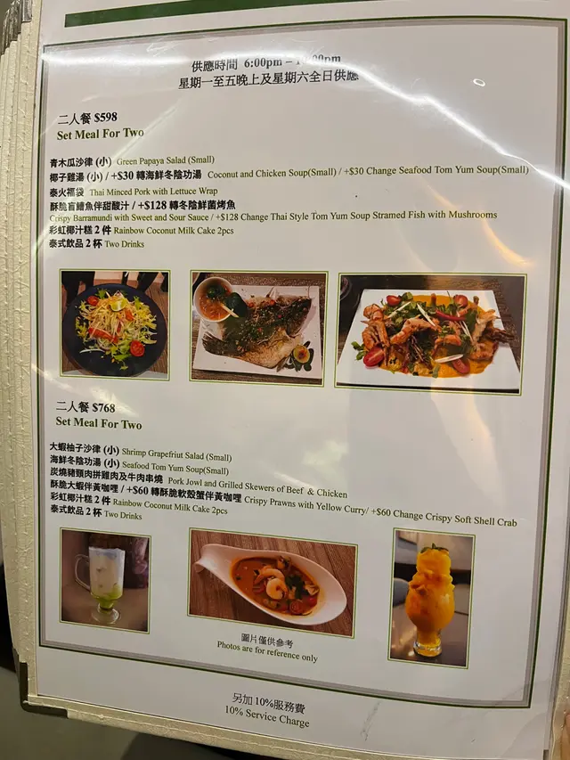 週末去尖沙咀行街街,但太陽實在太猛烈,要搵個地方休息下,又咁啱去到美麗華廣場見到間西餐廳門口幾靚,就入去坐下,原來這不是西餐廳,是一間泰國菜館,又真係估你唔到。Menu 有個weekend brunch,睇落係幾吸引,就試下。先來一杯mixed berry smoothie涼一涼先,😊嘩!好fresh好清爽。前菜係酸辣無骨鳳爪、魚子醬紅磚豆腐、泰式青醬鮑魚,好味,尤其係鮑魚好彈牙,加上青醬,食落好清新😋。揀左蟹肉海鮮羹,上枱見到都知佢足料,勁多蟹肉👍🏻。跟隨係小食放題,嘩!任食咁勁,我岩岩先睇到🤣,泰式青醬生蝦,同頭先食鮑魚個汁係一樣,清新的,生蝦好新鮮,食落有黏口但蝦肉咬落係脹卜卜👍🏻,好得👍🏻。炭燒豬頸肉沙律,燒得唔錯,但個酸汁好夾,食慾大增🤣。金不換肉碎生菜包,肉碎係岩岩炒起熱辣辣,包住爽口生菜🥬有點冰火的口感。香茅雞翼、泰式蝦多士正常發揮,唔錯。串燒牛雞就一般,乾左啲,但沙嗲汁好味👍🏻。主菜我揀了海南雞,我就覺得正常無咩特別,朋友就揀了香茅椒烤魚,這個唔錯,魚皮脆口,魚肉有魚油好滑又香👍🏻。整體非常OK,又坐得舒服,裝修又靚,有去泰國高級餐廳的感覺☺️。…Read More