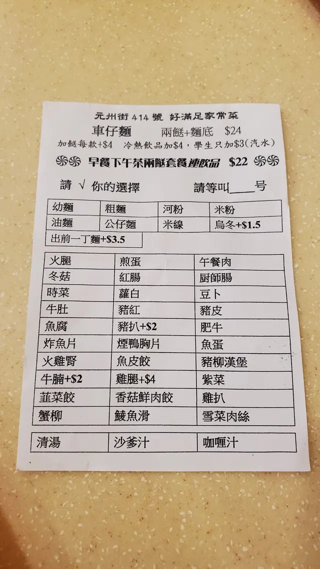 星期日食個下午茶餐,場景全日落大雨都冇乜客人。問有冇下午茶,才拎餐牌出嚟,唔問咪要食正價餐?叫咗叉燒腸仔公仔麵+冷奶茶。承惠$50。
