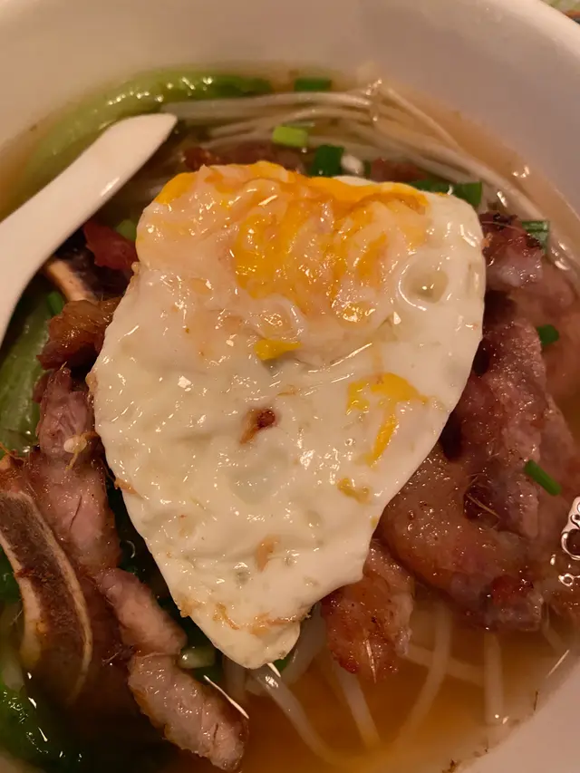 餐廳位於馬灣住宿區中既地舖有小小偏僻,需要花小小時間尋找餐廳環境清幽、寛趟而且設計得很有渡假既感覺清炒時菜 $52Seasonal vegetables with garlic 樣子好似好普通,好一般但卻充滿驚喜!清炒但卻充滿蒜味👍🏻健康又美味既一道餸👍🏻豬頸肉湯金邊粉$38Roasted pork neck soup noodle上網見到餐廳有湯金邊炒就冒名而黎誰不知,晚市沒有湯粉但老板娘知道黎,就特為我地而炮製果然沒有失望! 湯底濃郁入味豬頸肉都好入味…查看更多