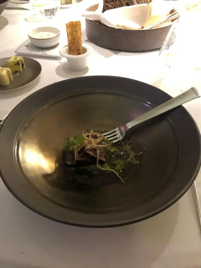 The restaurant is still open and everyone is taking further cautionary measures: masks and extra distance between tables. All these would not affect the service level and experiences. It was at least 70-80% full, not really bad. They only offer set therefore we ordered the 5-courses menu. 7 is simply too much for us. The chef was kind enough to switch prawn into fish for my friend who cannot eat shell fish; and beef/chicken into fish for me...actually, quite flexible. I could not help wonder - would they design even a new menu if I said no to every dish on the menu.Bread was really nice and warm. I really loved the sourdough: the crispy outside and the chewy inside, warmed up, slightly sour, and together with the champagne flavored butter...everything you can ask for with a piece of sourdough all got together perfectly.The amuse bouche was ok; then came the first dish with Tuna, marinated in vinegar. Salty, very strong flavor, this was our general feeling. The taste was very strong already with vinegar; I was not sure how much additional salt/flavoring was inside. Anyway, we had to drink water...and cannot taste anything else other than the strong vinegar/salt flavoring.Second was prawn for me...again, very strong taste, creamy...and salty...same for the rest of the dishes. The main course with cod fish for - a kind of fish that indeed needs strong flavoring. I guess I just got a chef who really loves strong taste...loves all flavoring. It was lucky that I brought a bottle of Napa wine (yea...I know...but I just wanted to drink this bottle that night) to go with all these strong flavorings. I eat light? No, not at all. I like spicy Sichuan food from China. Last, dessert cart. Nice that they allow me to bring back a few pieces.In general, this was an ok experience. They tried their best during a difficult period of time...…查看更多
