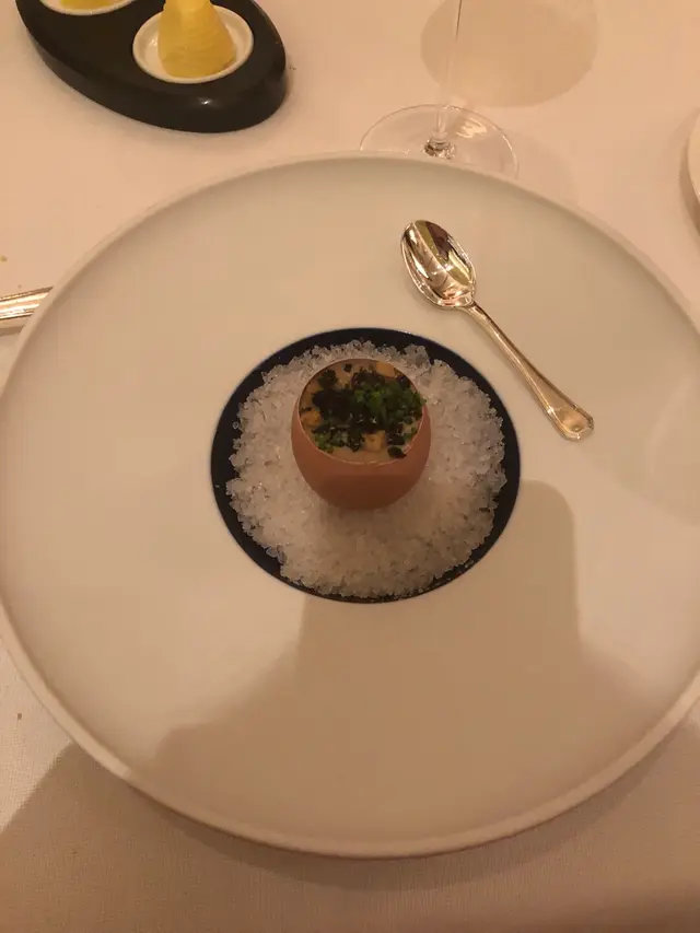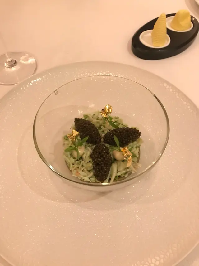 Chef Galliot definitely made Caprice a 3-star again! After being so disappointed with the previous visit about 2-3 years ago, I finally decided to come back again. A good friend of mine convinced me with the “bloody” pigeon and king crab - some serious yet innovative french cooking. Same as before, the Caprice is, as always , elegant and romantic. With the warm welcome by the skilled staffs, we got seated at the lower section facing the harbour.Dinner started with two rounds of amuse bouche. The first set was before the breadbasket with a combination of truffle/celery taste base, smoked salmon, and a curry based bite. These were all fine, achieving the purpose of stimulating your appetite.The the breadbasket came - same as before, you can choose a selection of various bread. It would be better if the bread was warmer. It felt that they have put the basket in air for too long.The second amuse bouche was egg yolk with shattered truffle - it never goes wrong between egg and truffle - a mouth full of truffle flavour made a satisfactory start of the dinner.We ordered king crab and blue lobster as appetisers. Both came with very generous portion of caviar (felt like almost a full box). The king crab with creamy sauce went very well with the caviar and gave a rich feeling with different layers of taste - love it. On the other hand, the blue lobster feels a bit plain and hard in its natural texture; and felt a bit farfetched mixing with caviar. We chose pigeon/foie gras and turbot fish for mains. The pigeon was cooked in a special nit’s hell - this was a beautiful presentation and later on the taste of the pigeon was a pleasant surprise! The meat was very tender and flavourful, and went very well with the even more tender/softer foie gras. Again, the chef was very generous and it was a huge piece of foie gras...The fish was nice as well - not too hard or soft. Depending on what you feel like having on the day, both are worth trying and demonstrate delicate cooking skills.We had cheese as the finishing (nothing too good/bad to mention) and have no more space for the petit fours - never been shy, we packed them back home we also got free pieces of apple pies - very sweet and you need strong coffee to go with it...Well...we were full and quite satisfied with the dinner. Service was ok...can be better...but food comes as the priority...I am now looking forward to chef Galliot’s next menu!…查看更多